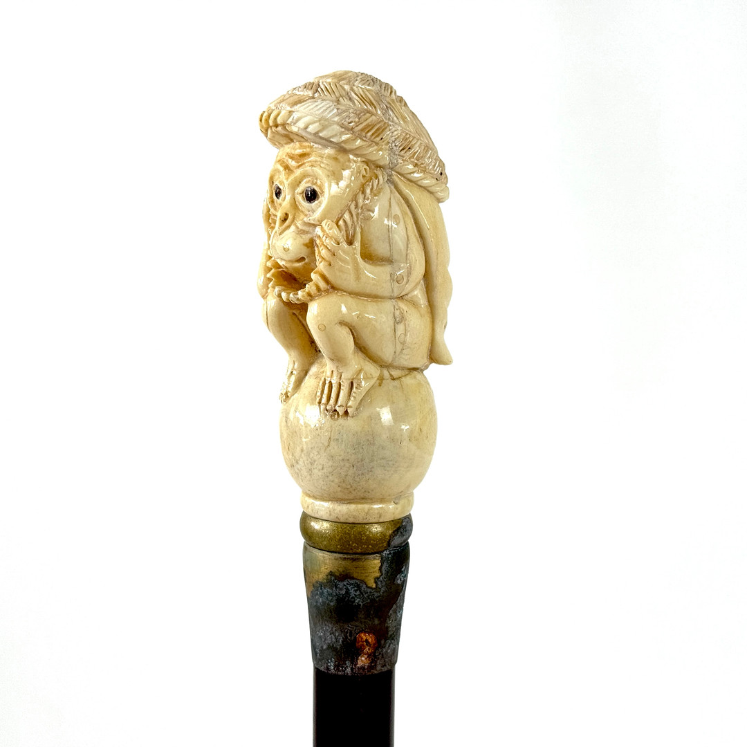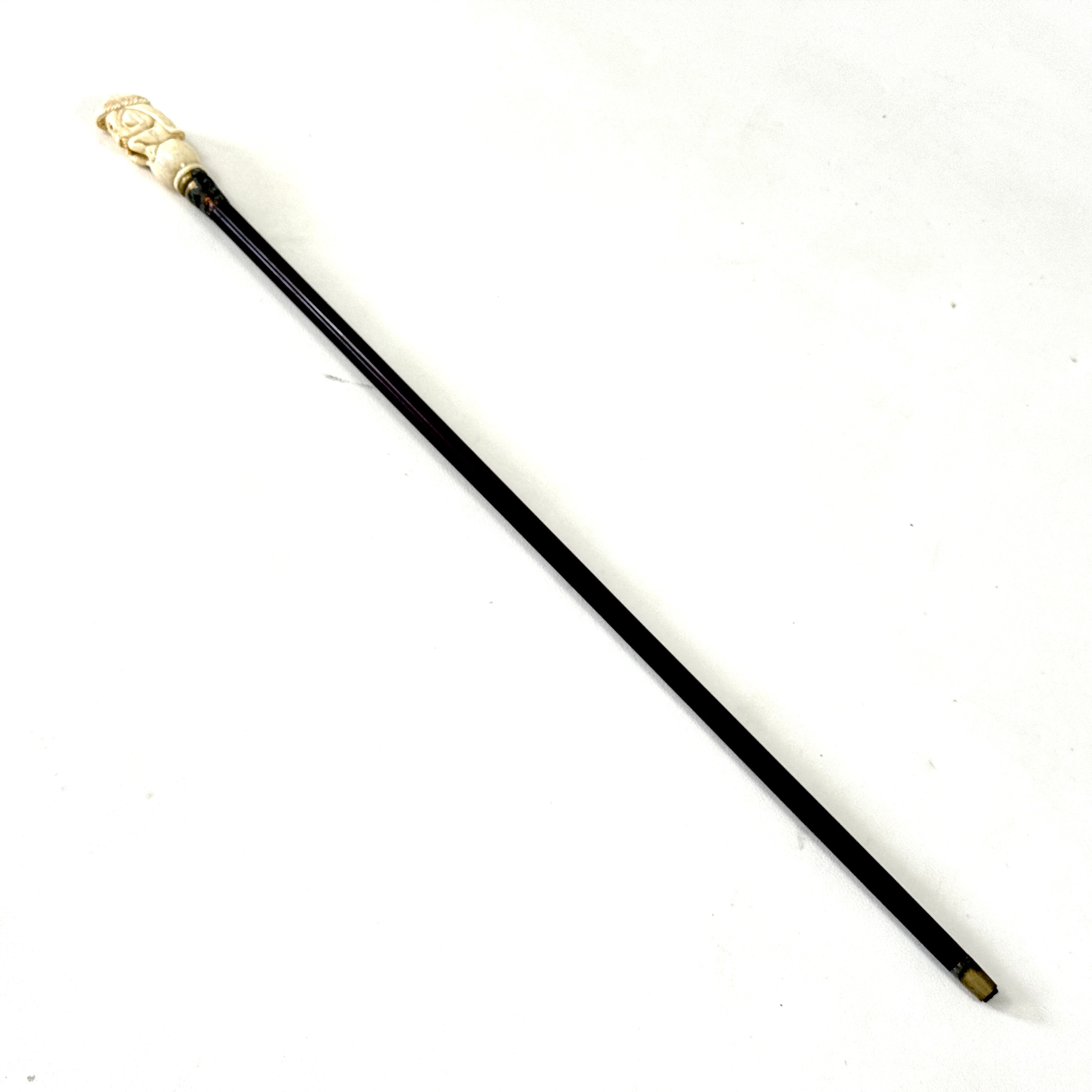 4456059. CARVED BONE HANDLED WALKING STICK.