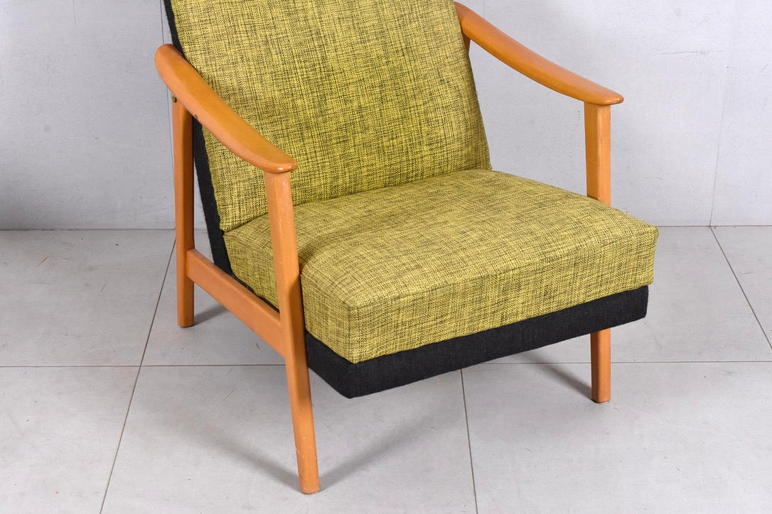 ARMCHAIR, beech with two-tone wool upholstery.