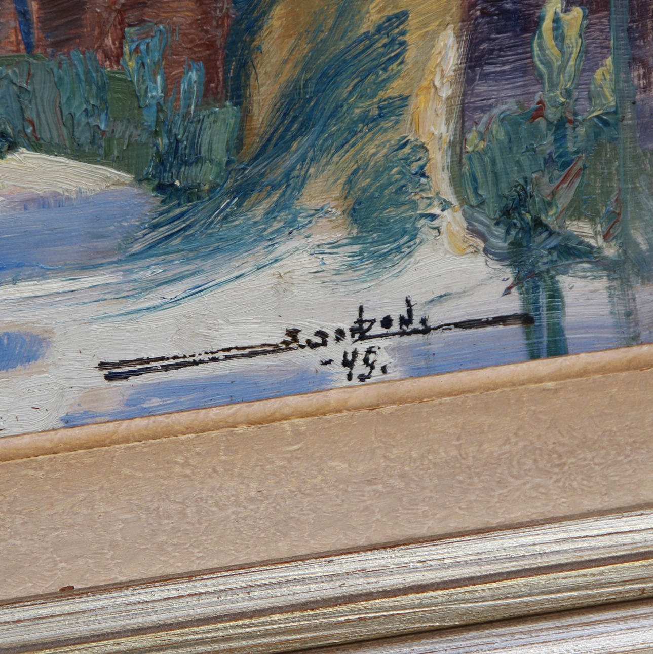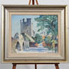 STIG JONZON. “SILVERHÄTTAN, VISBY IN DINNER LIGHT” OIL ON PANEL, SIGNED, DATED -49.