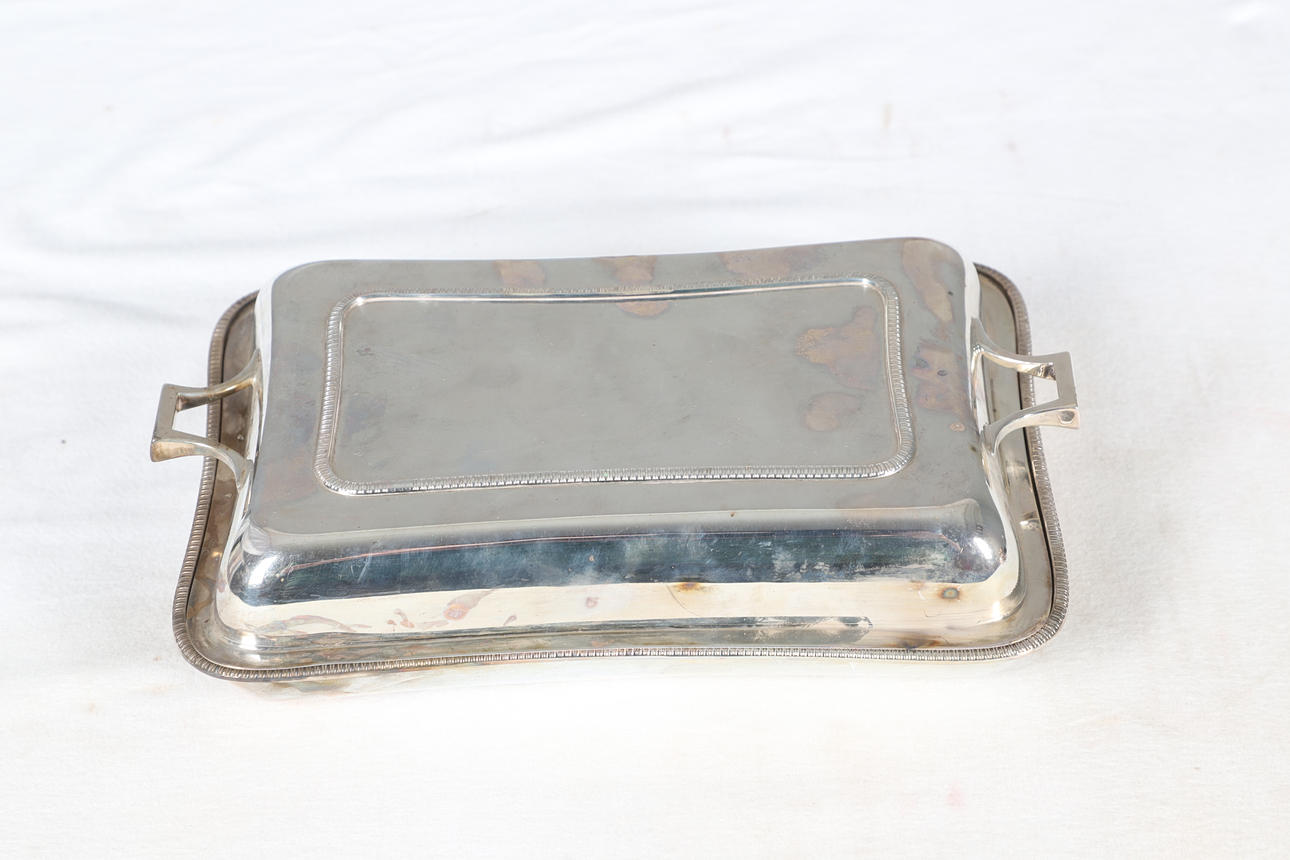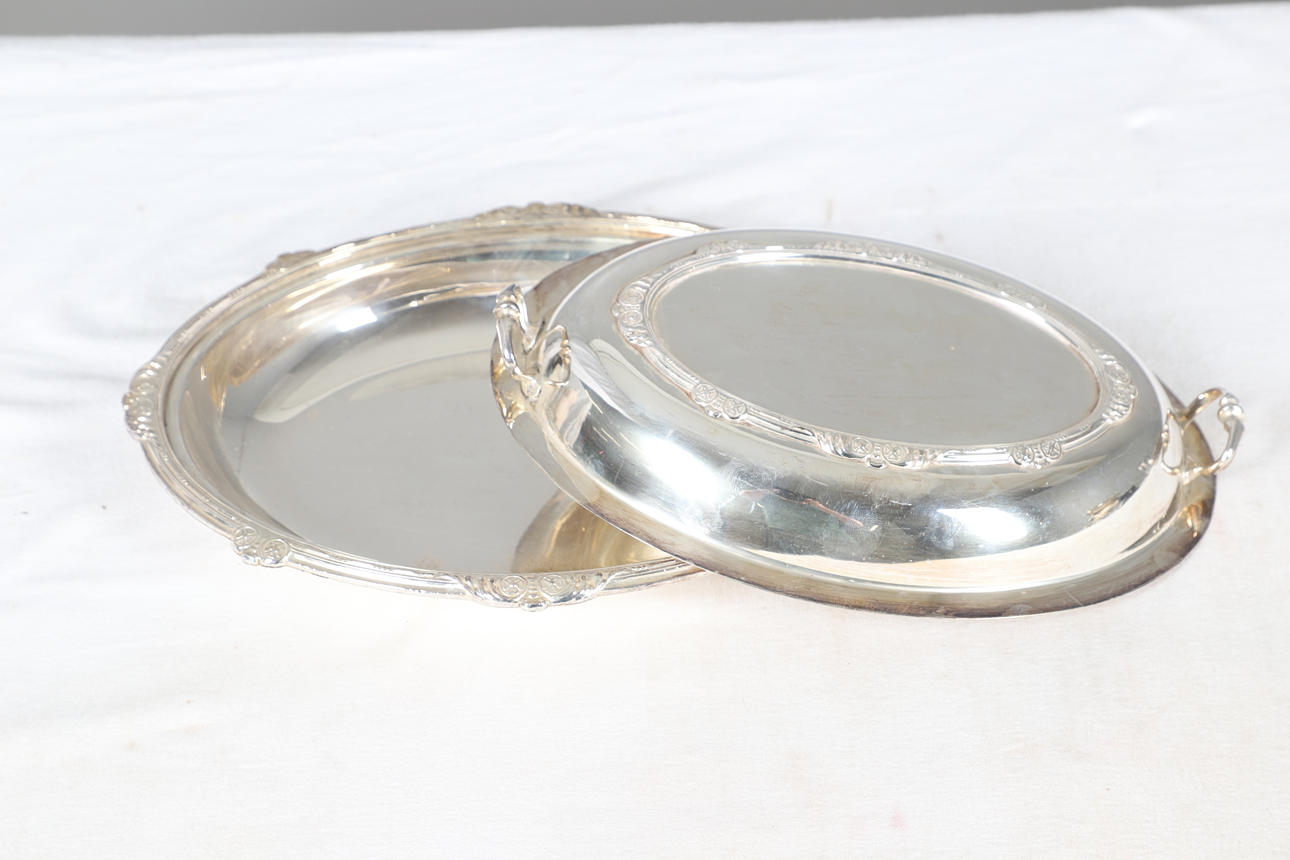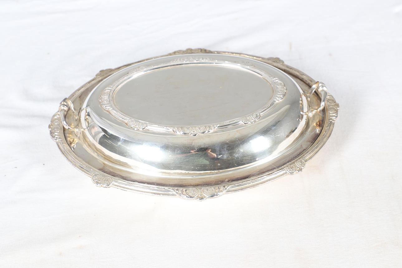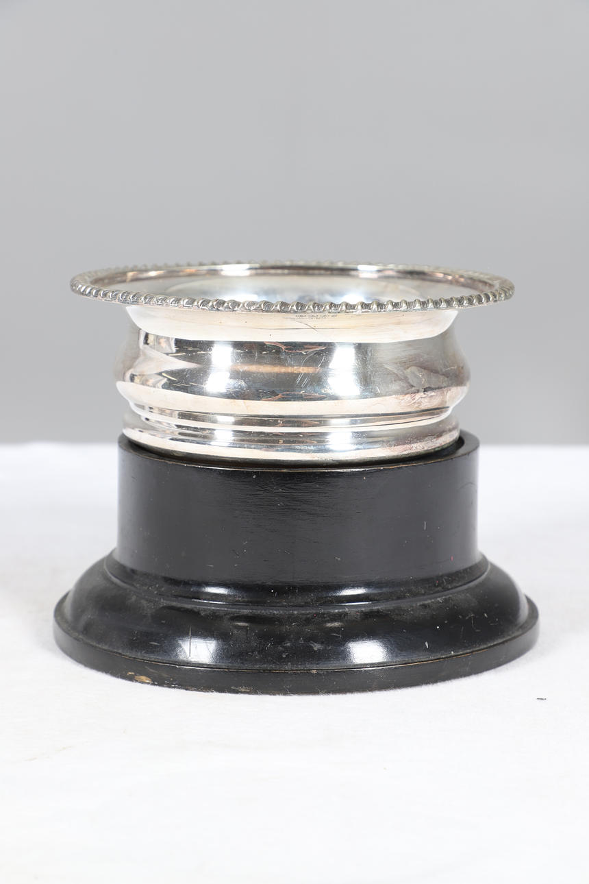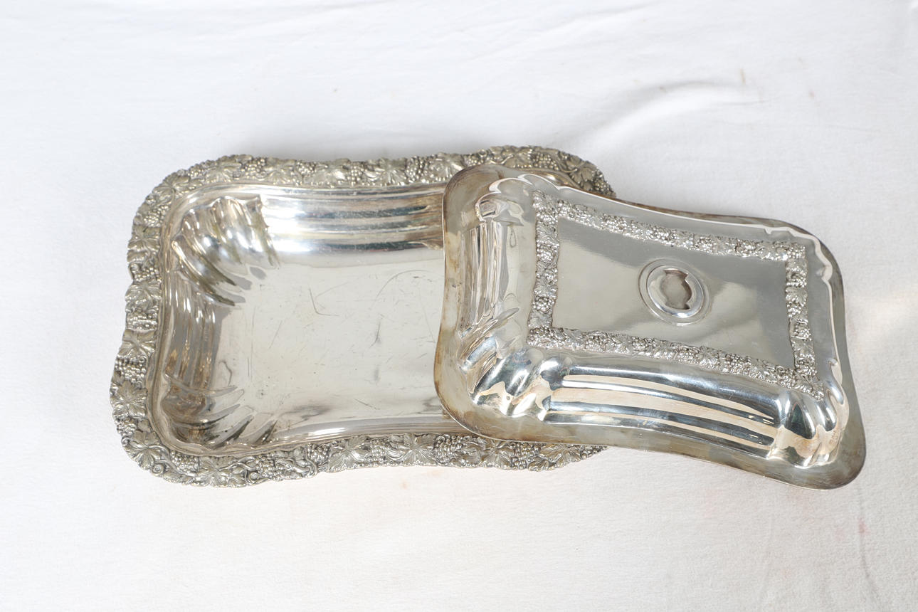 To include serving dishes and covers, coasters, an ebonised trophy base and other silver plated items of interest. Please see online images. Comes in a box Height 25cm x Width 58.5cm x Depth 40cm.