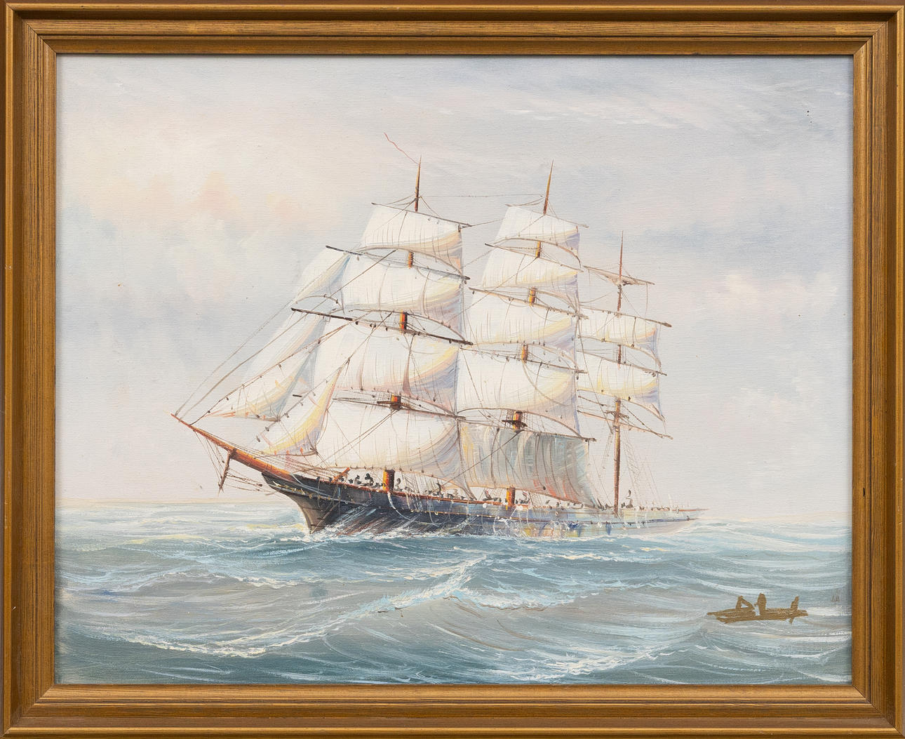 4457455. OIDENTIFIERAD KONSTNÄR. Sailing ship, oil on canvas, indistinctly signed.