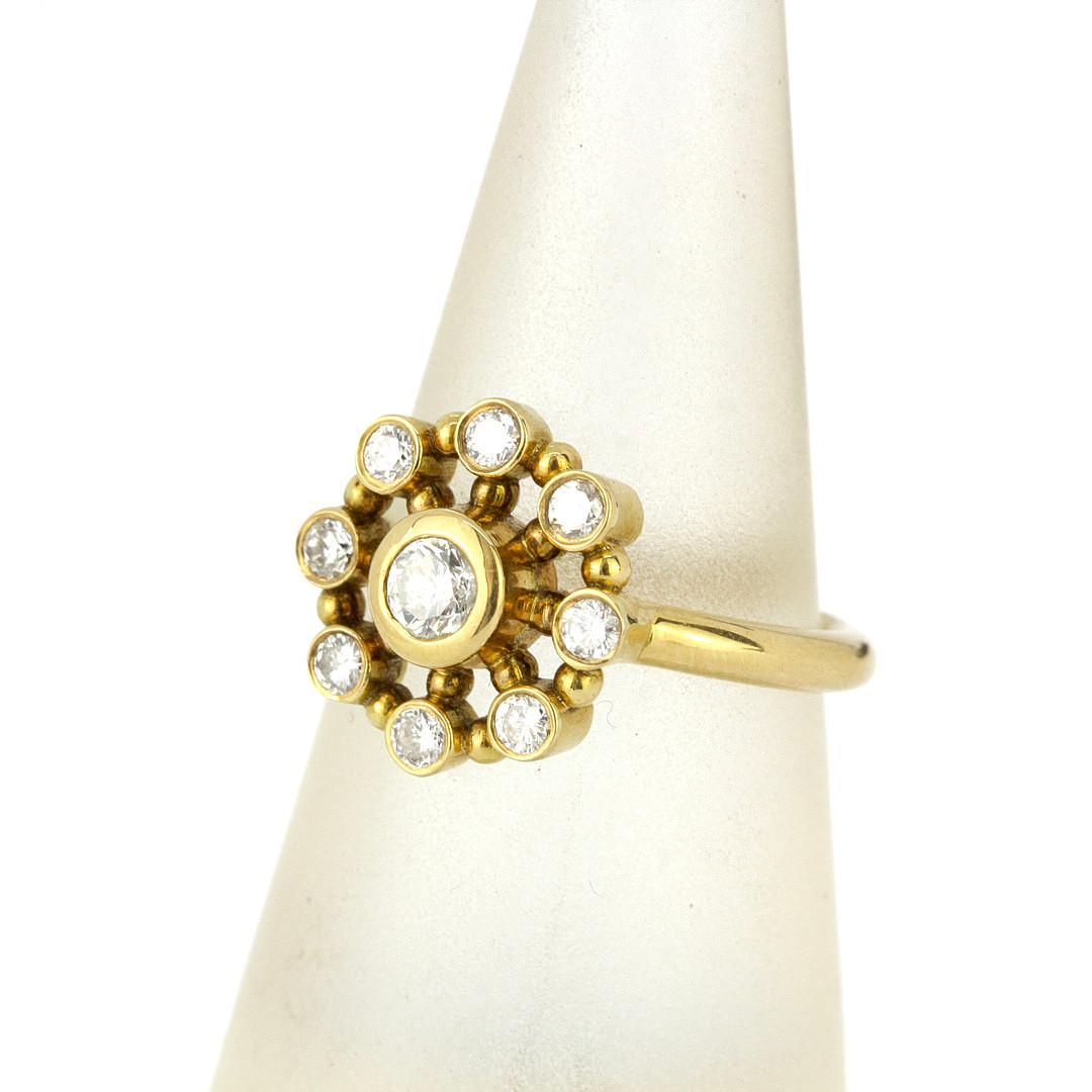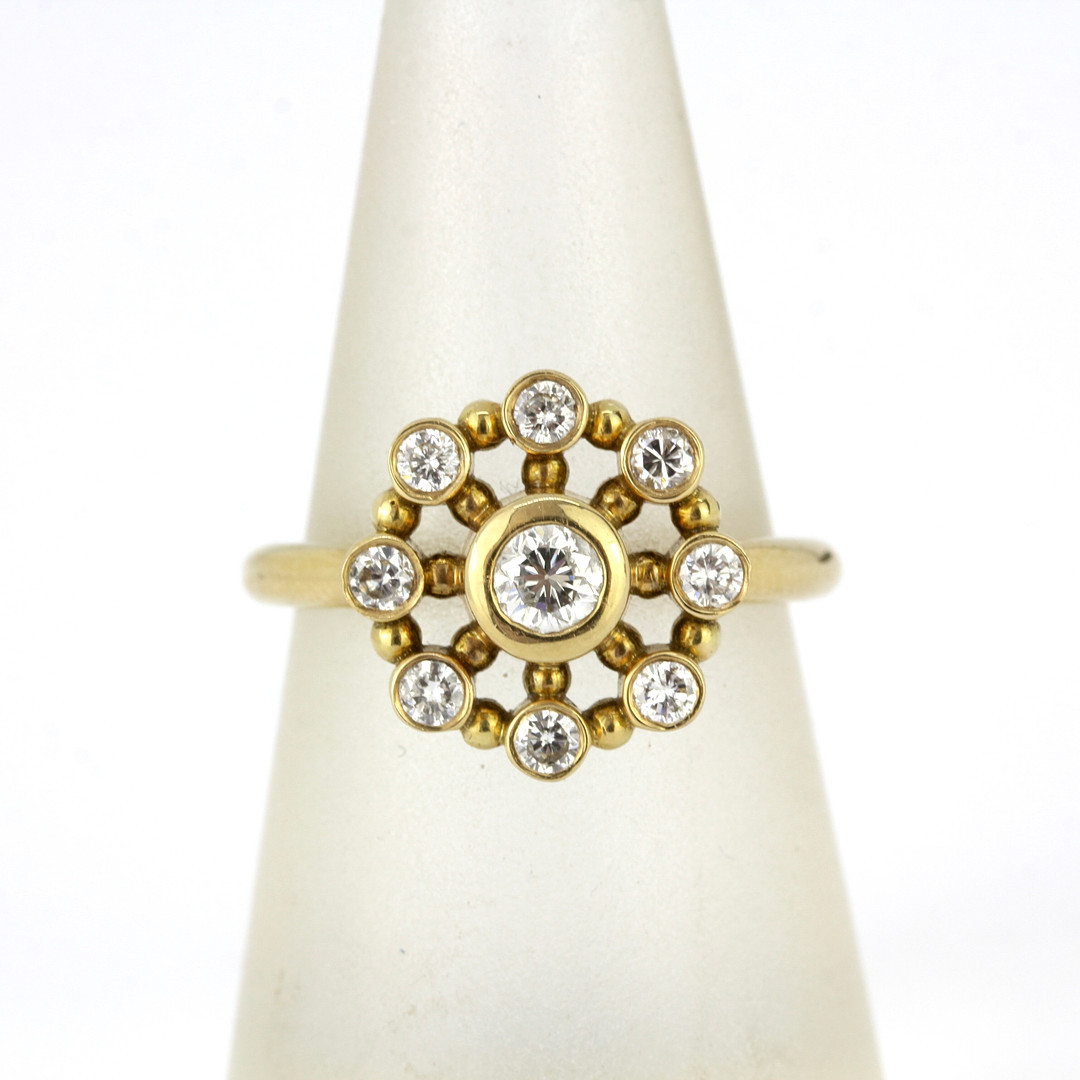 4457585. 18CT GOLD 0.60CT DIAMOND CLUSTER RING.