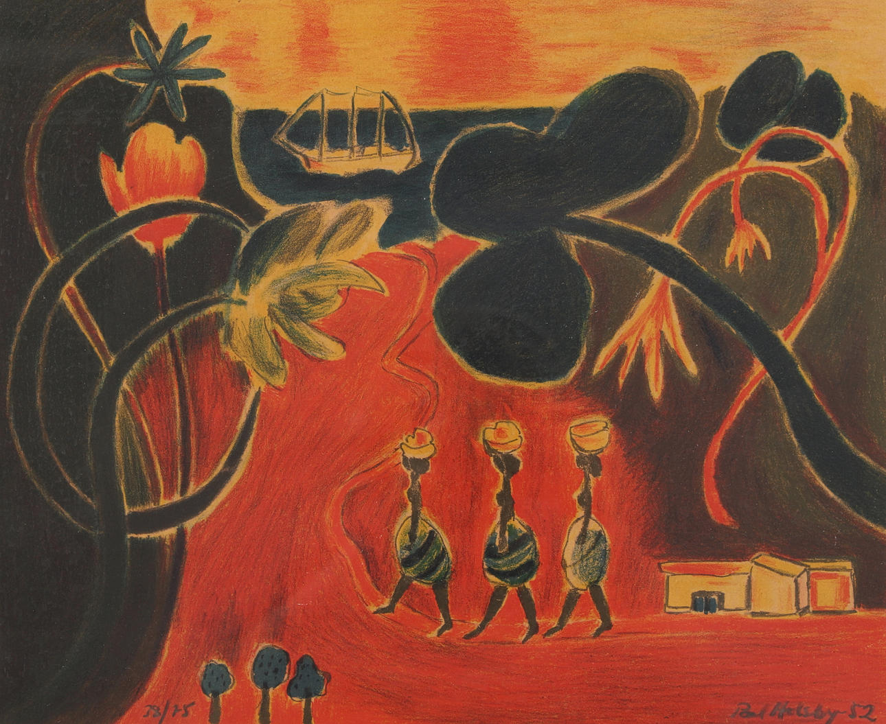 PAUL HOLSBY. Lithographs, 2 pieces, figural compositions, partially signed.