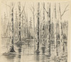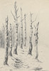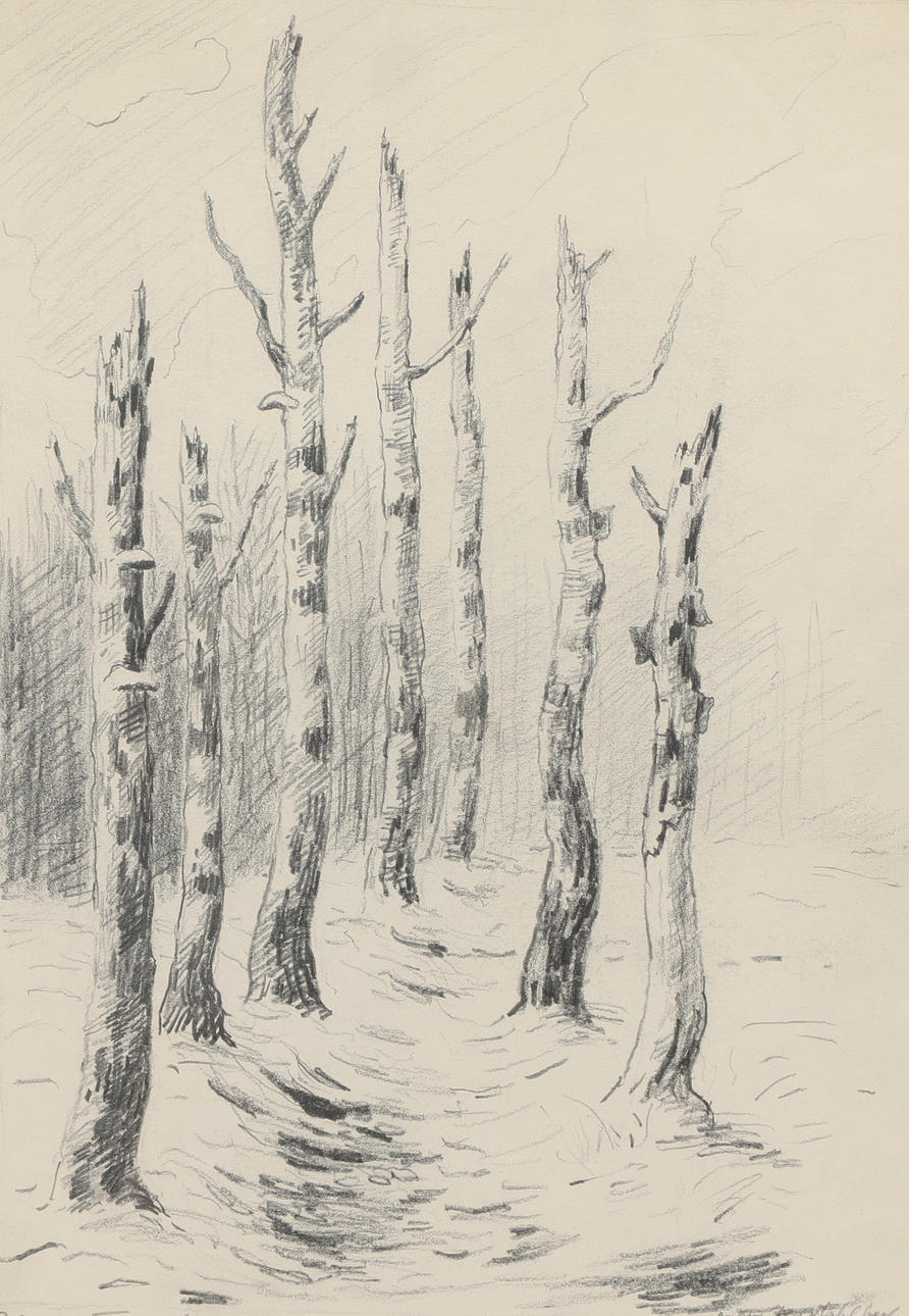 Pencil drawing, motif with trees, picture dimensions approx. 36x26 cm.