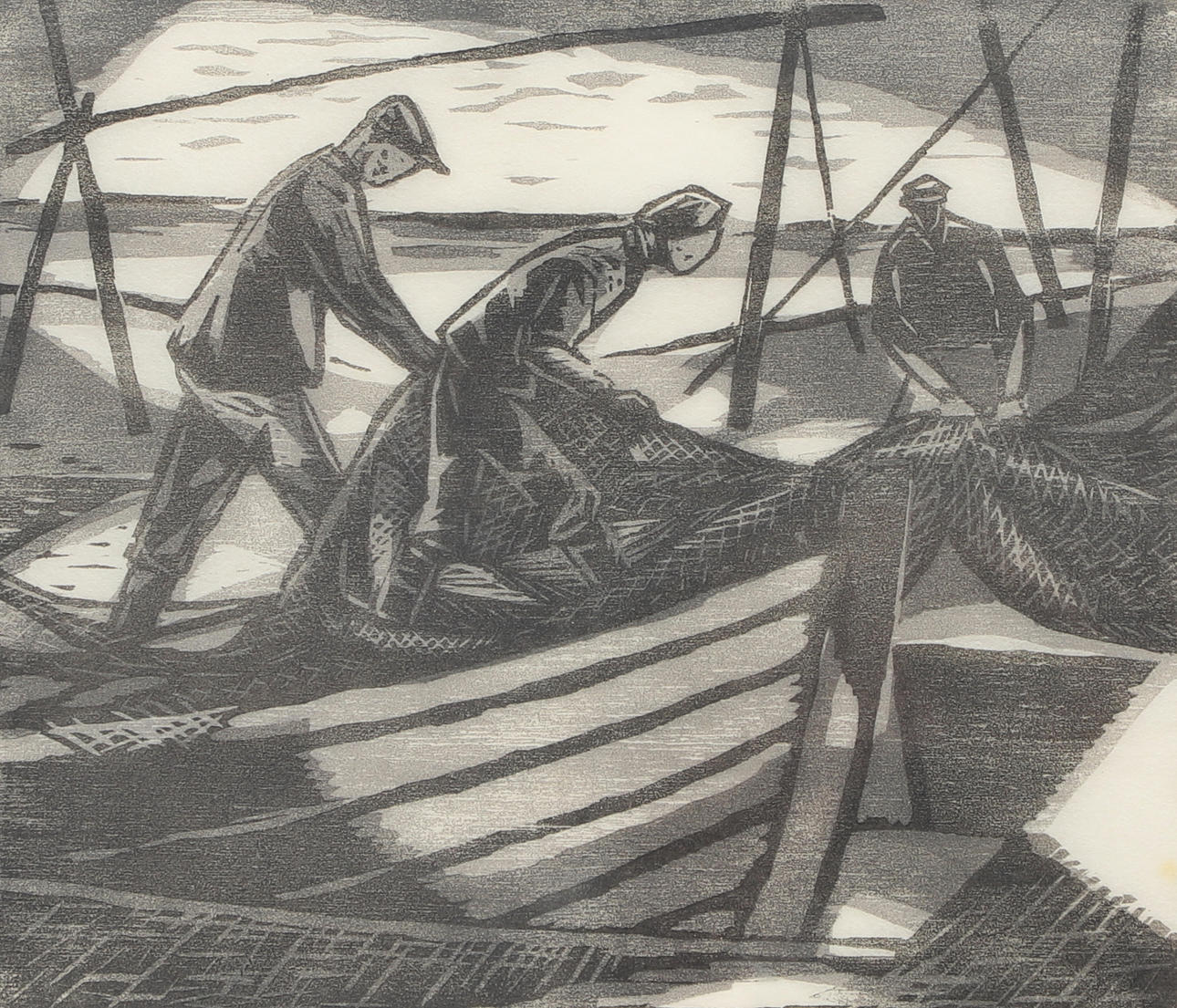 Woodcut, fisherman, picture dimensions approx. 15.5x18 cm.