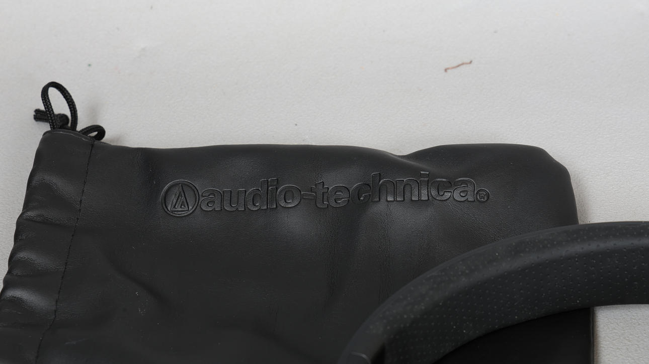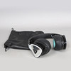 DNA headphones alongside leather drawstring bag 20.5.