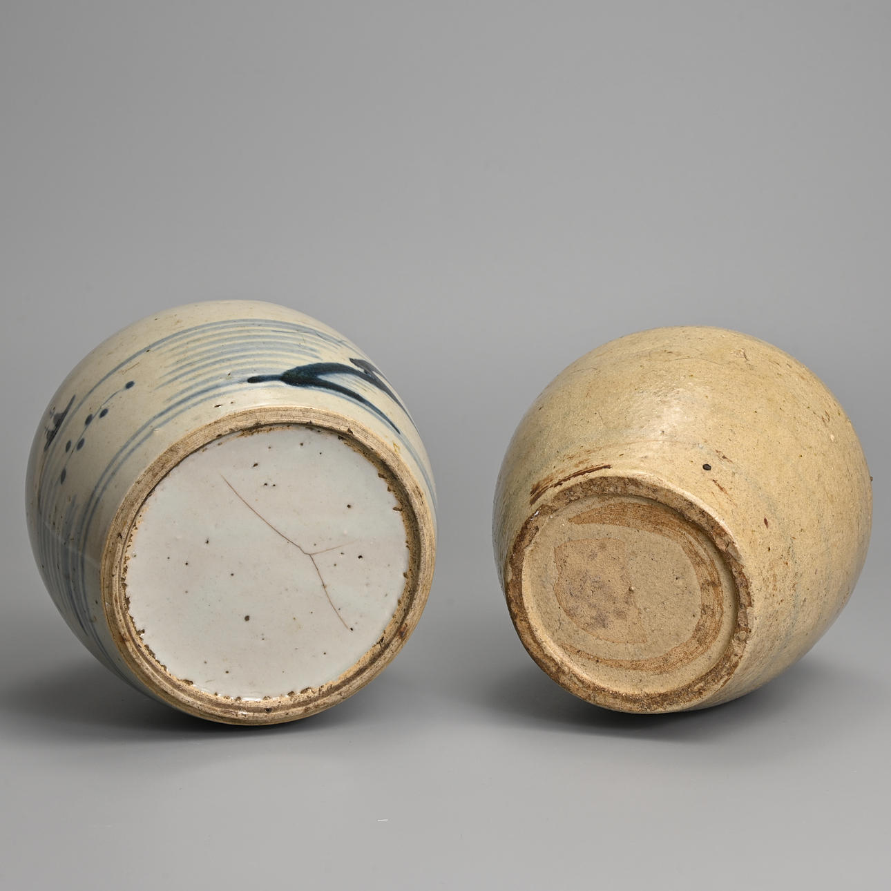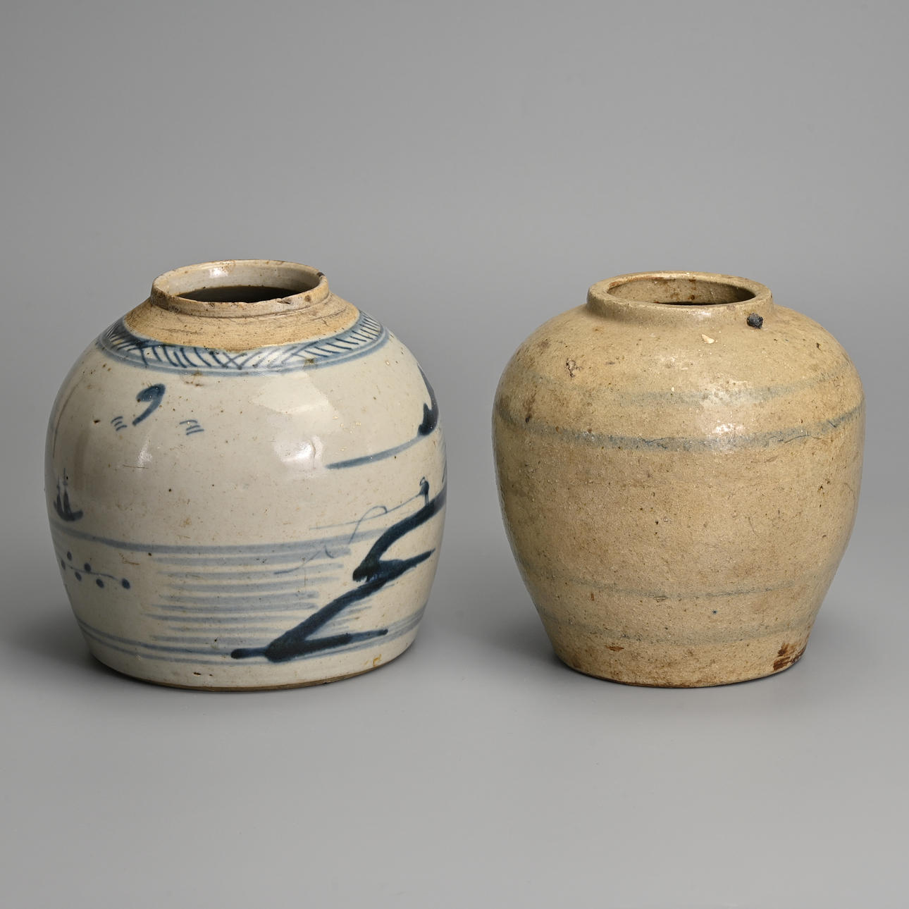 Together with one other jar decorated with four faint underglaze blue bands. 16cm x 15cm