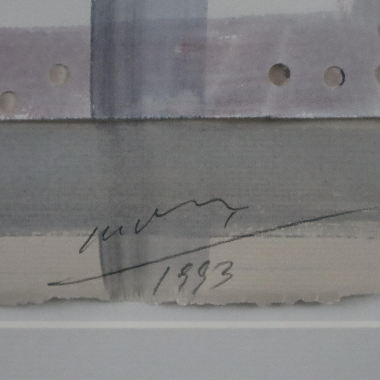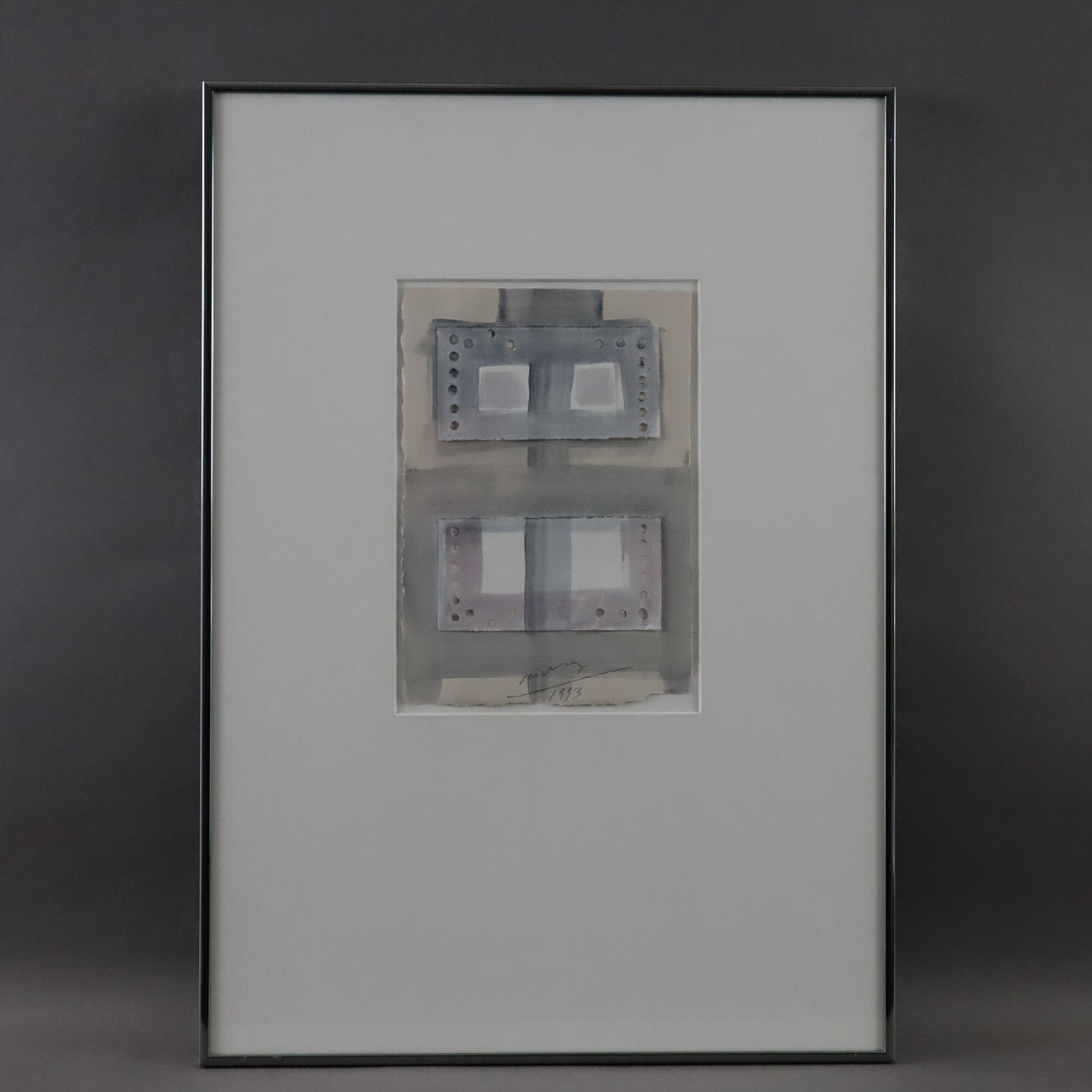 Signed and dated in the lower center, sheet size ca. 25.5x17.5 cm, framed with passe-partout under glass, frame with silver-coloured brushed metal strip, total dimensions approx. 60 x 42.5 cm