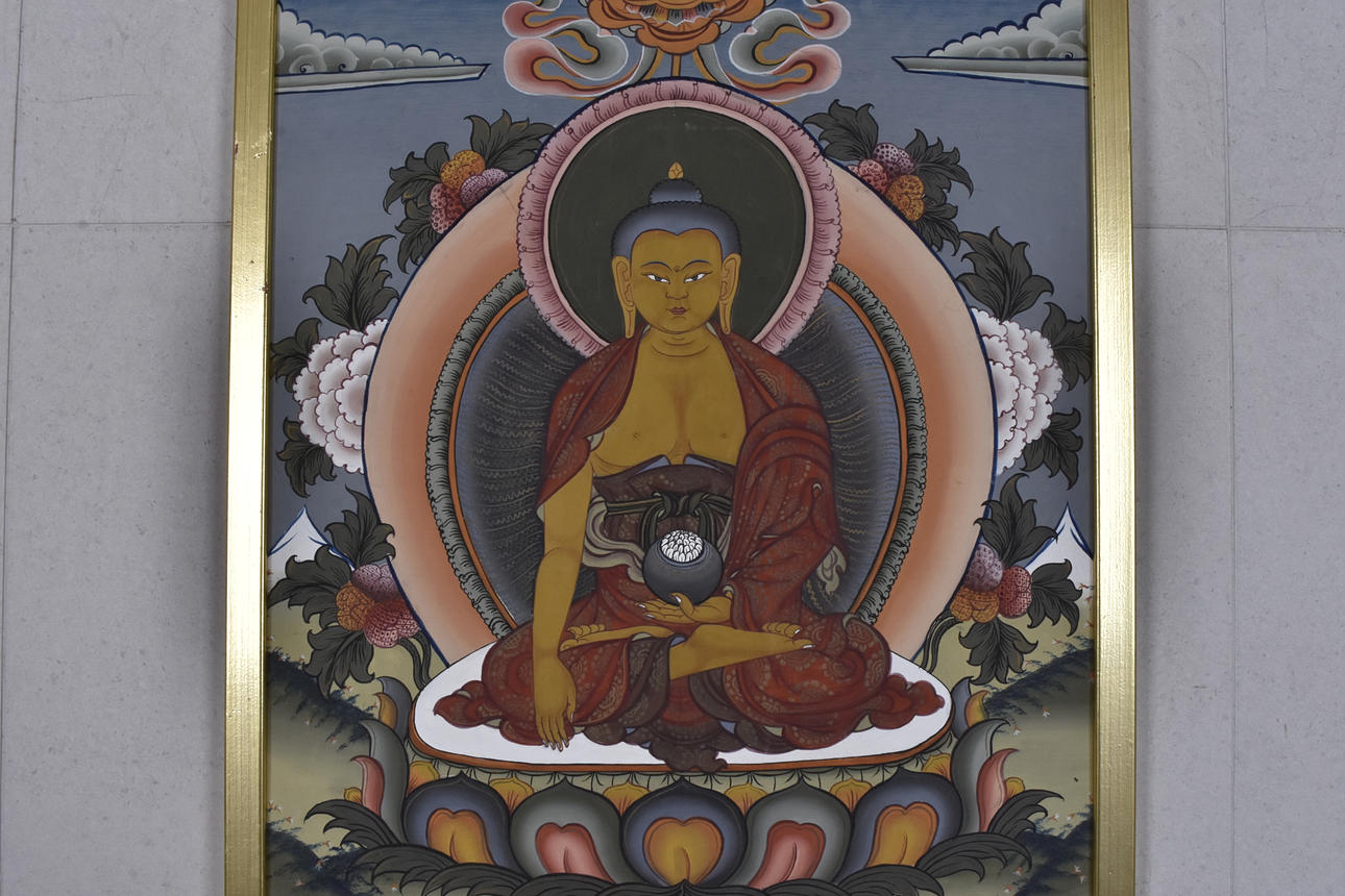 4459197. THANGKA, GOUACHE ON CARDBOARD.