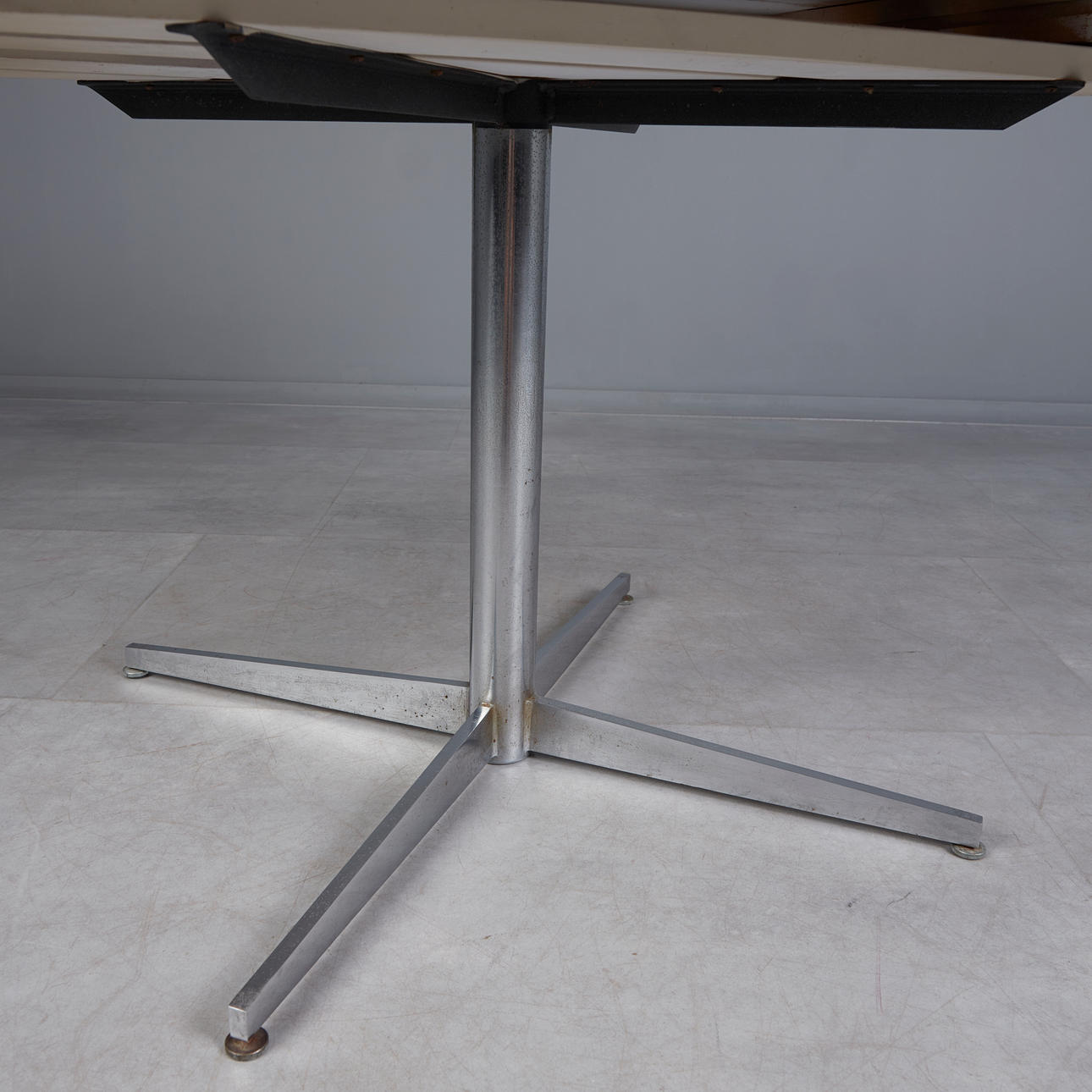 Vitra, extendable dining table, 1 shelf, round, painted white, chrome-plated metal base.