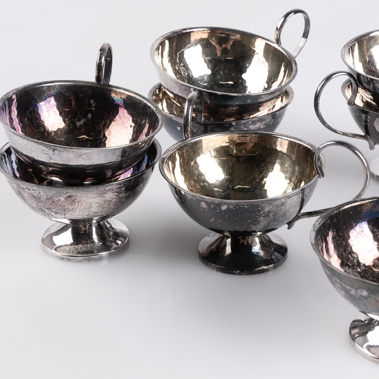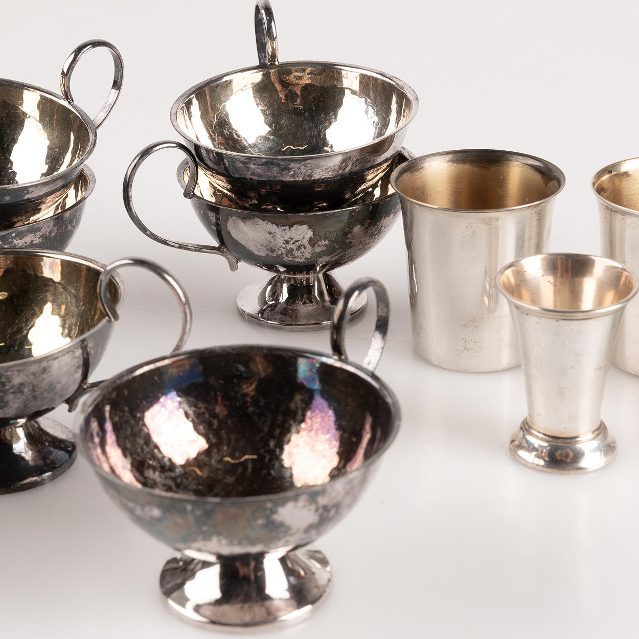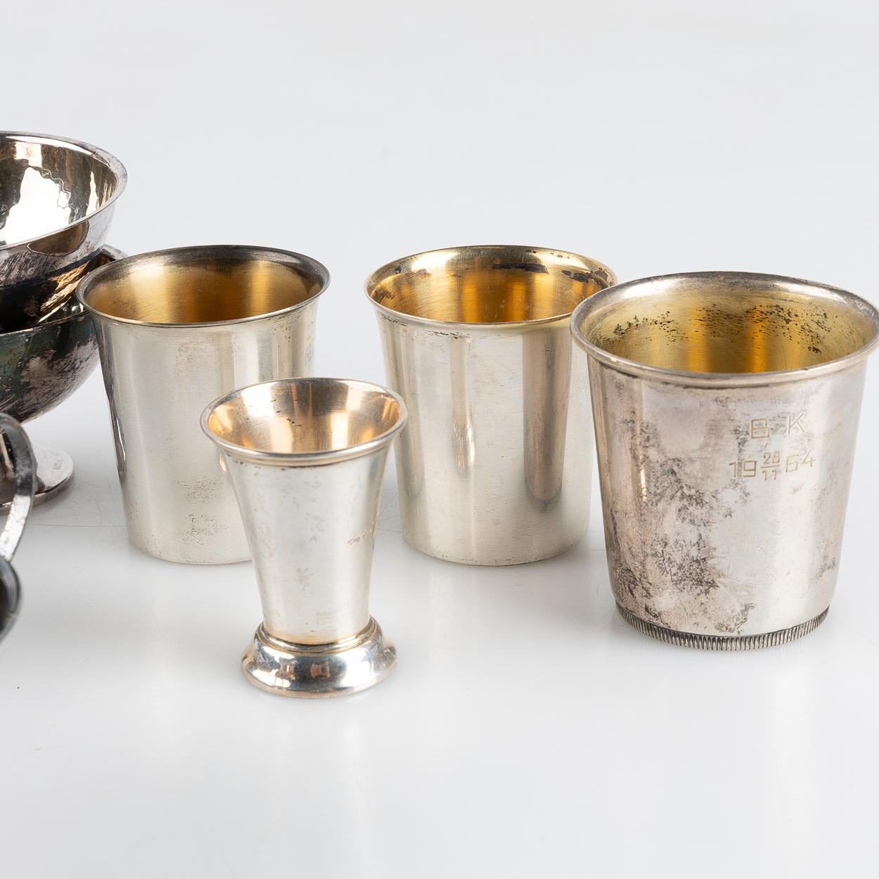 8 punch, height 5,5, diam 7 cm 4 cups, height 4-5 cm Total weight approx 343g.