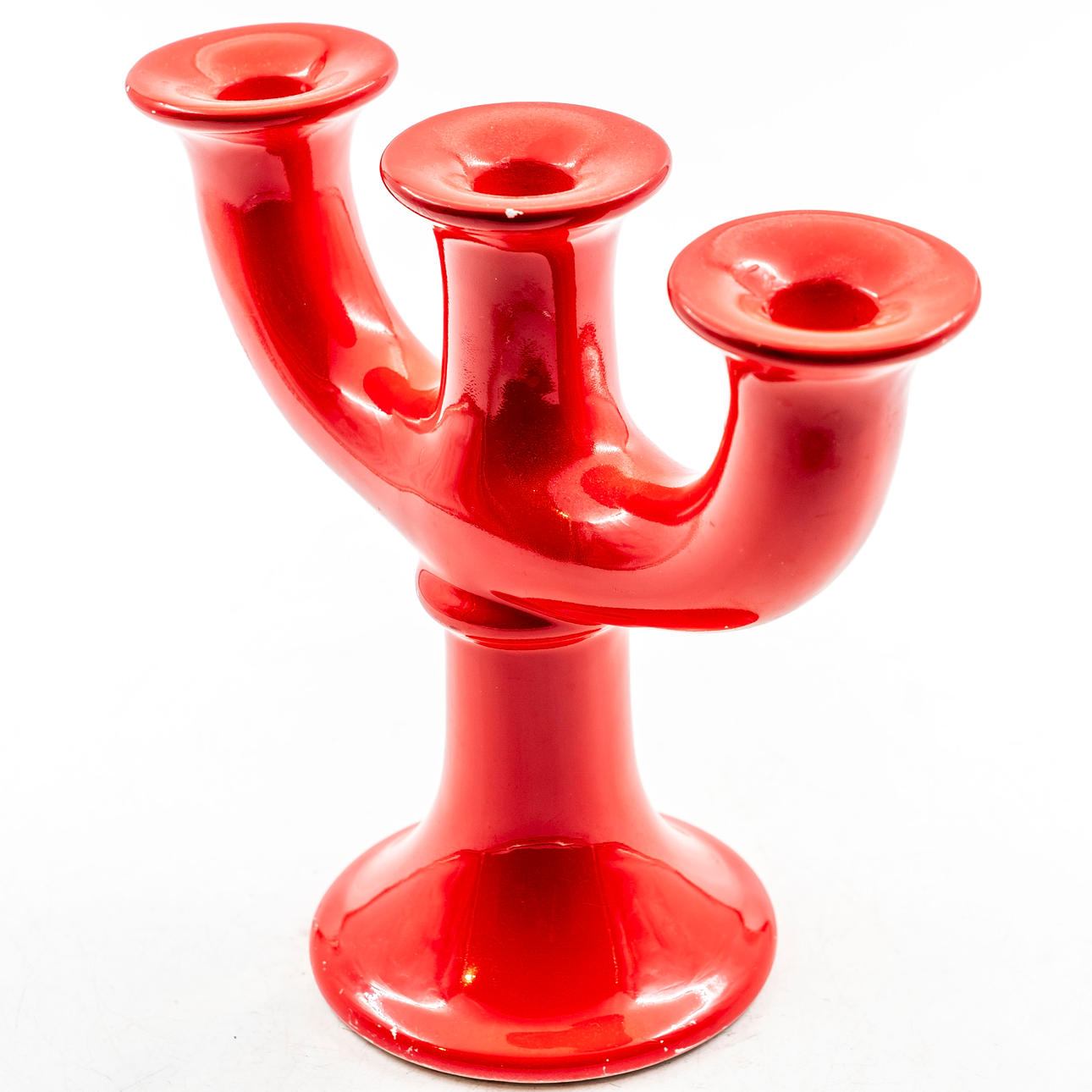 LISA LARSON. Candelabra, Ceramic, Red, 20th century.