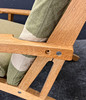 Oak frame, cushions loosely covered with linen.