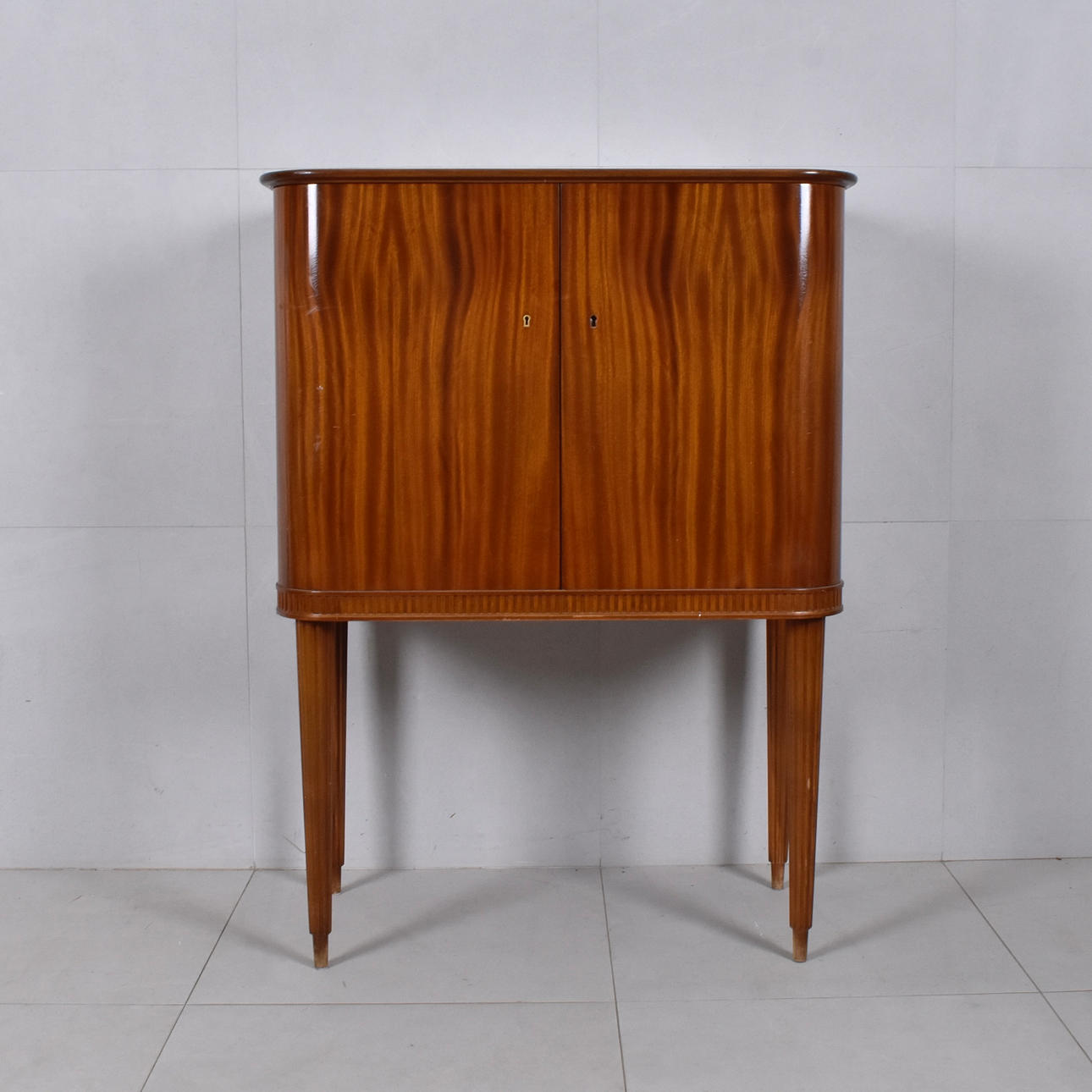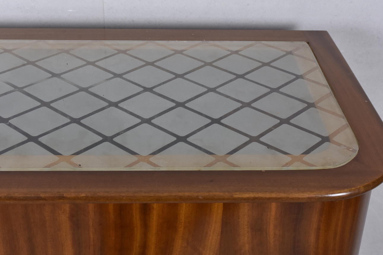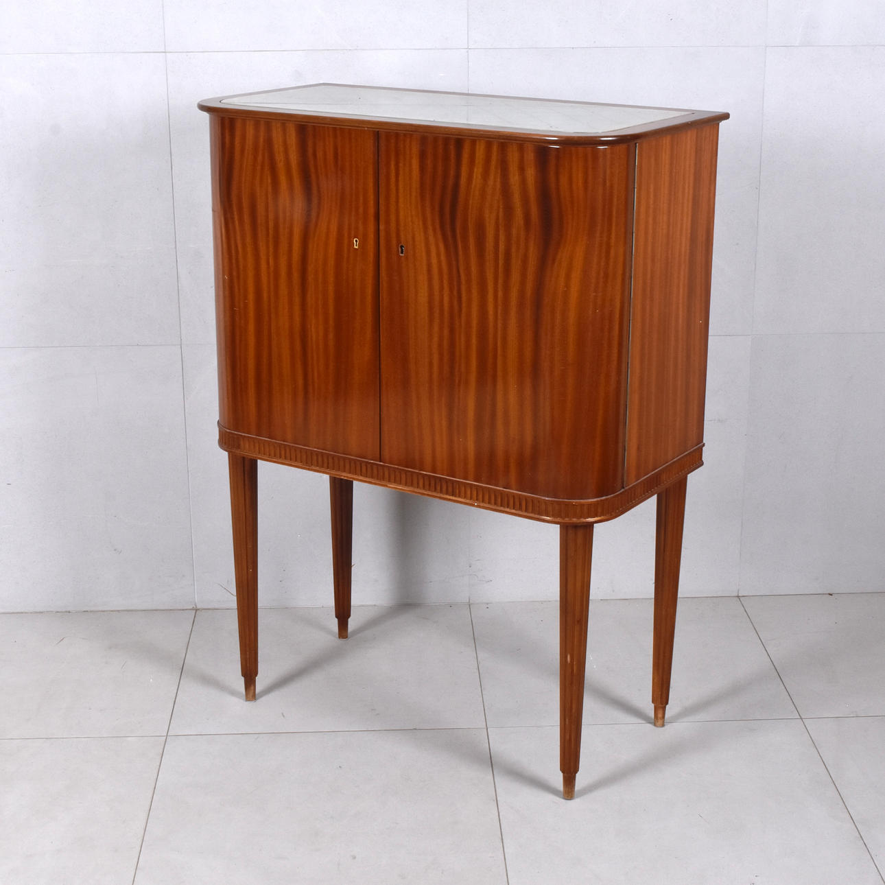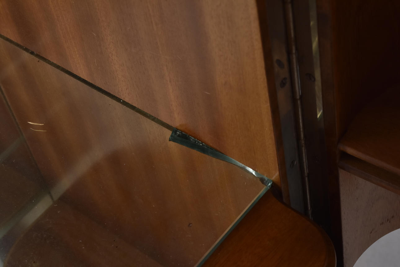 upper glass top, interior with mirrors, h 114 cm, b 85 cm, d 44 cm.
