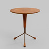 It's teak. Details in yellow metal. Diameter 40, height 46 cm.
