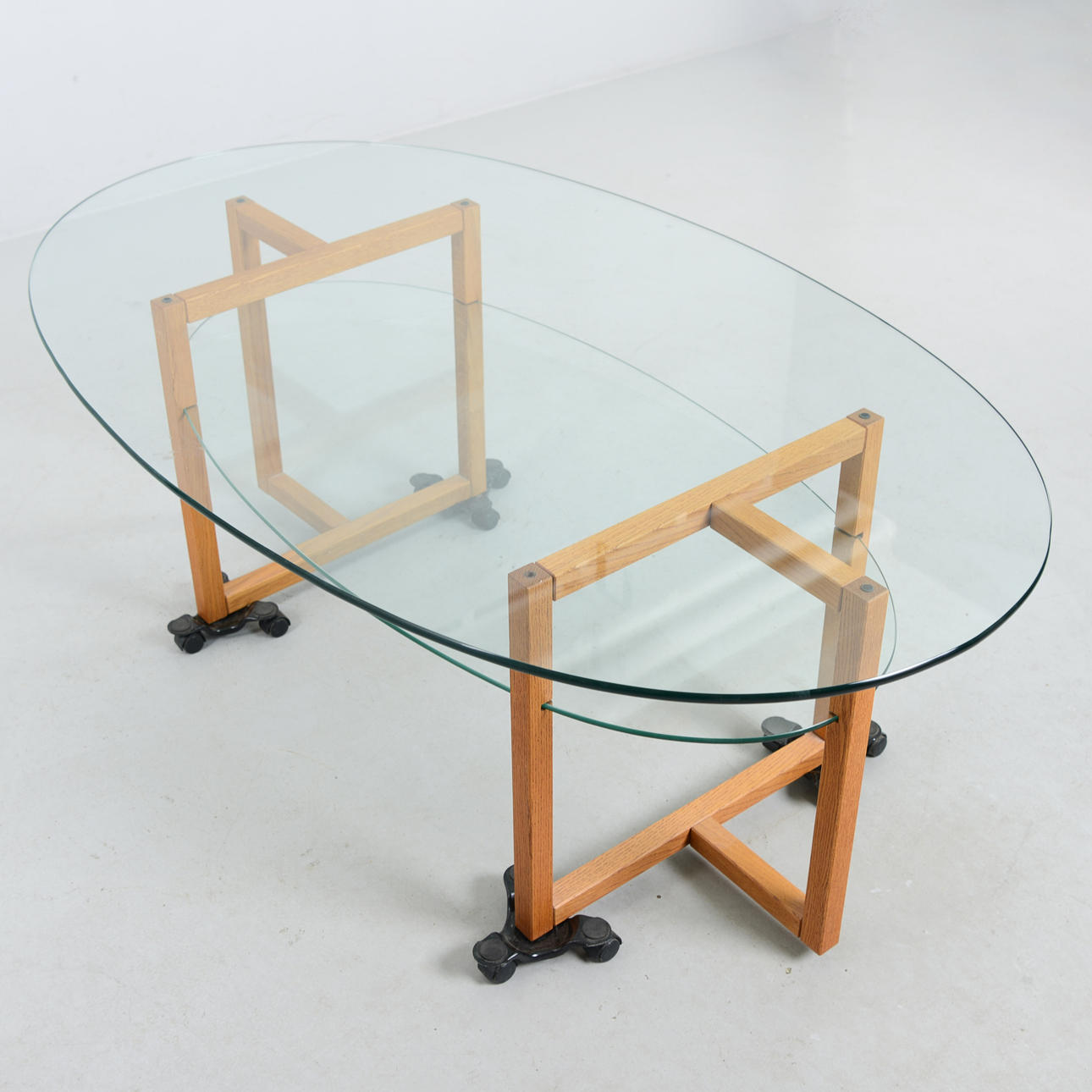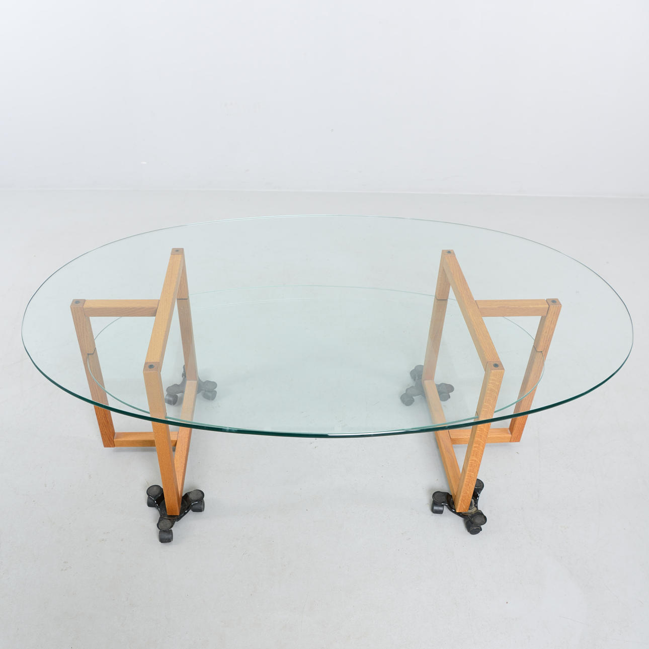 Oak and glass. Dimensions: 52 x 150 x 90 cm.