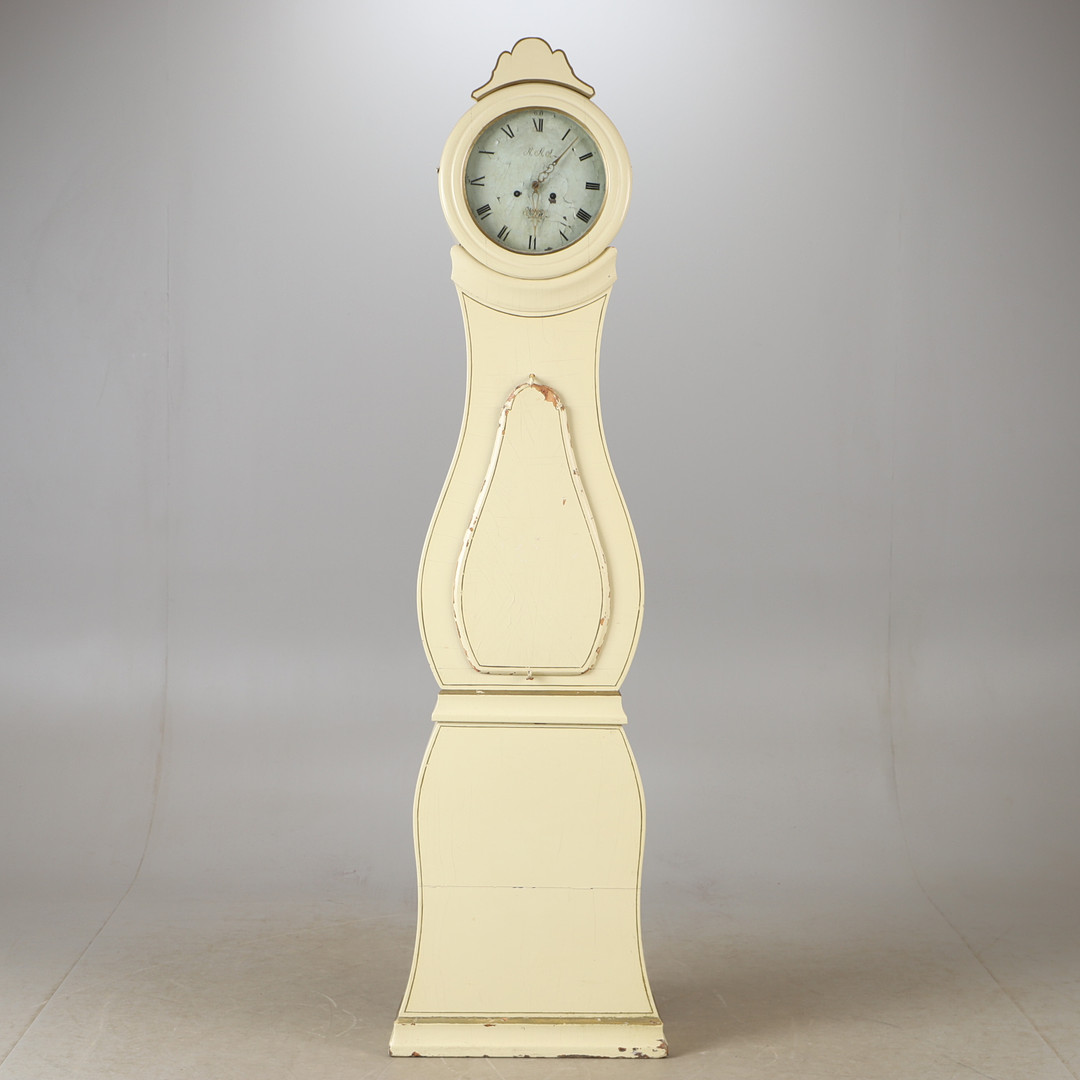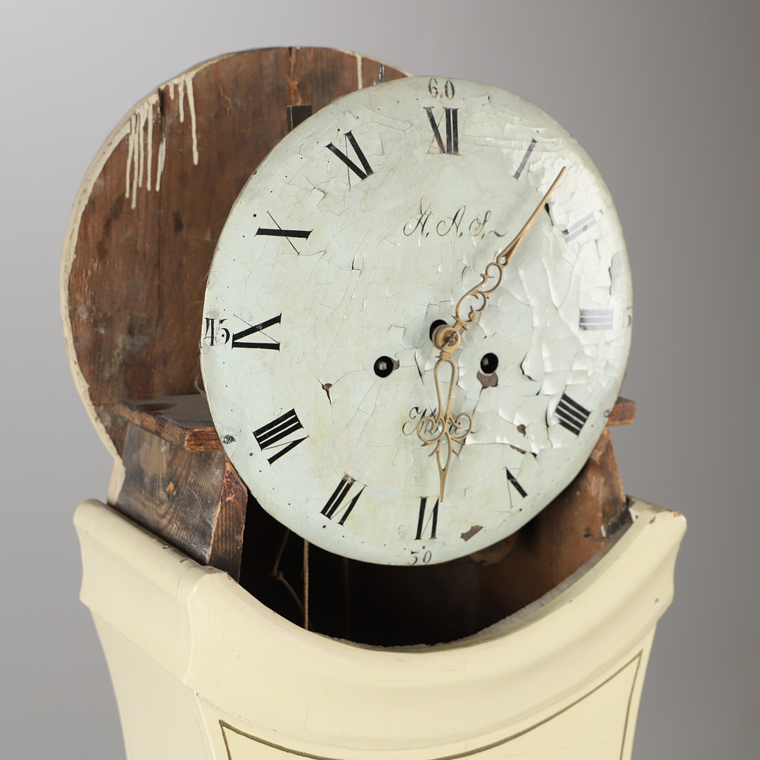 4460937. A 19th century white painted floor clock.