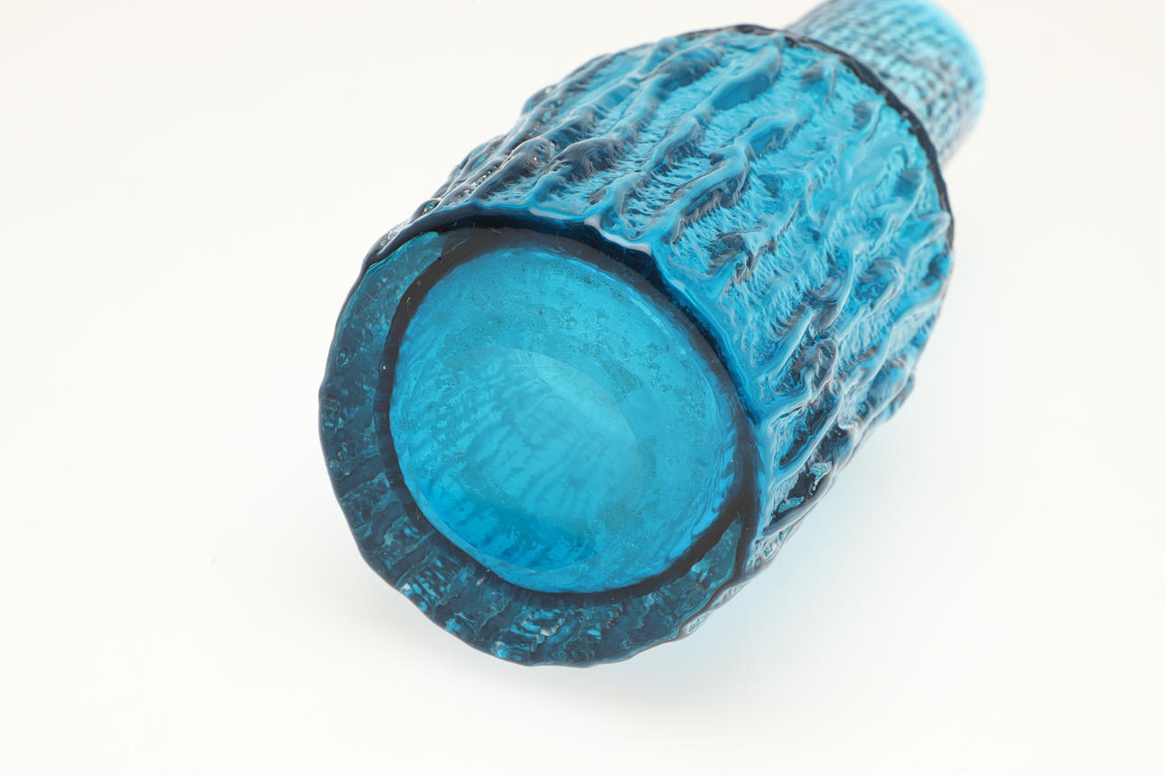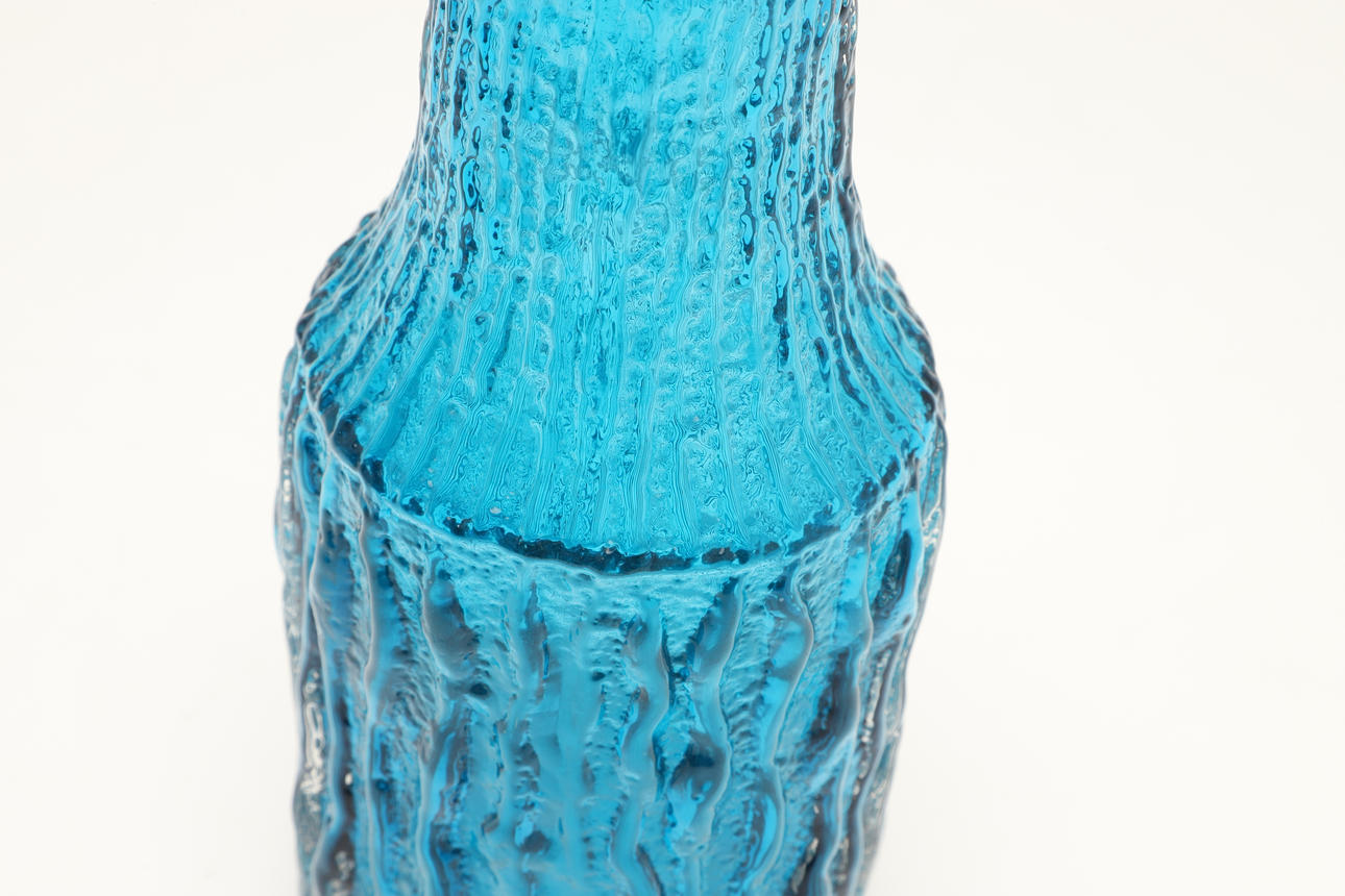 A Whitefriars textured bottle vase in the Kingfisher Blue colourway, pattern no 9730 and designed by Geoffrey Baxter. 20cms high.