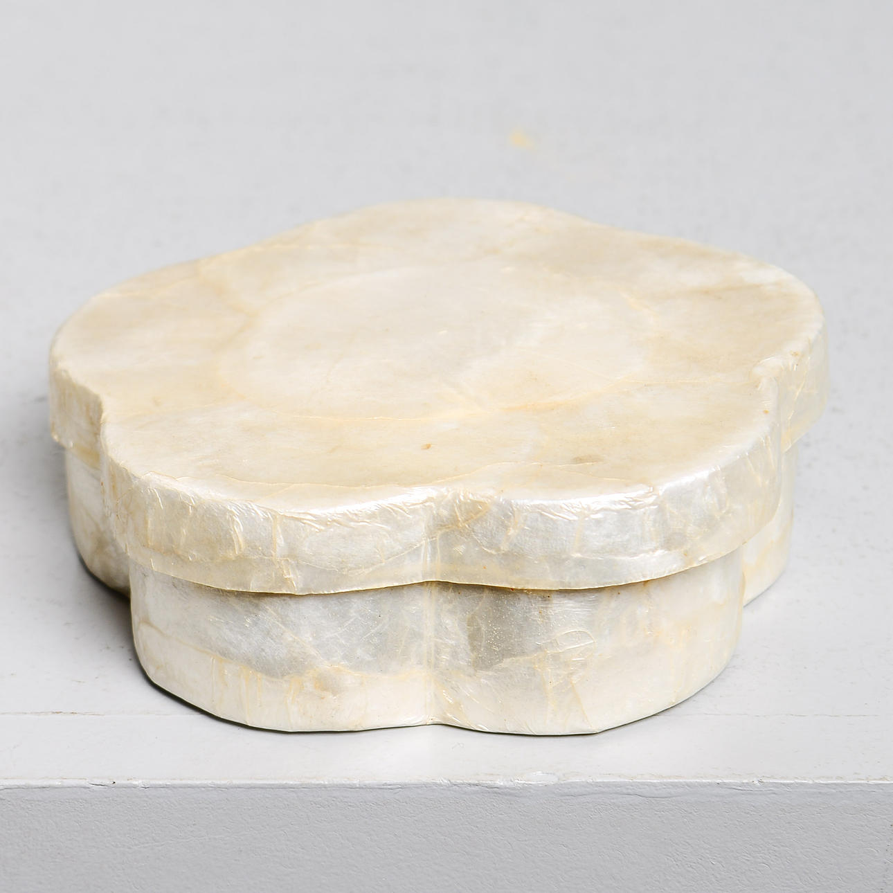 4462075. A glass coaster, capiz seashell, Shellman, 20th century.