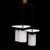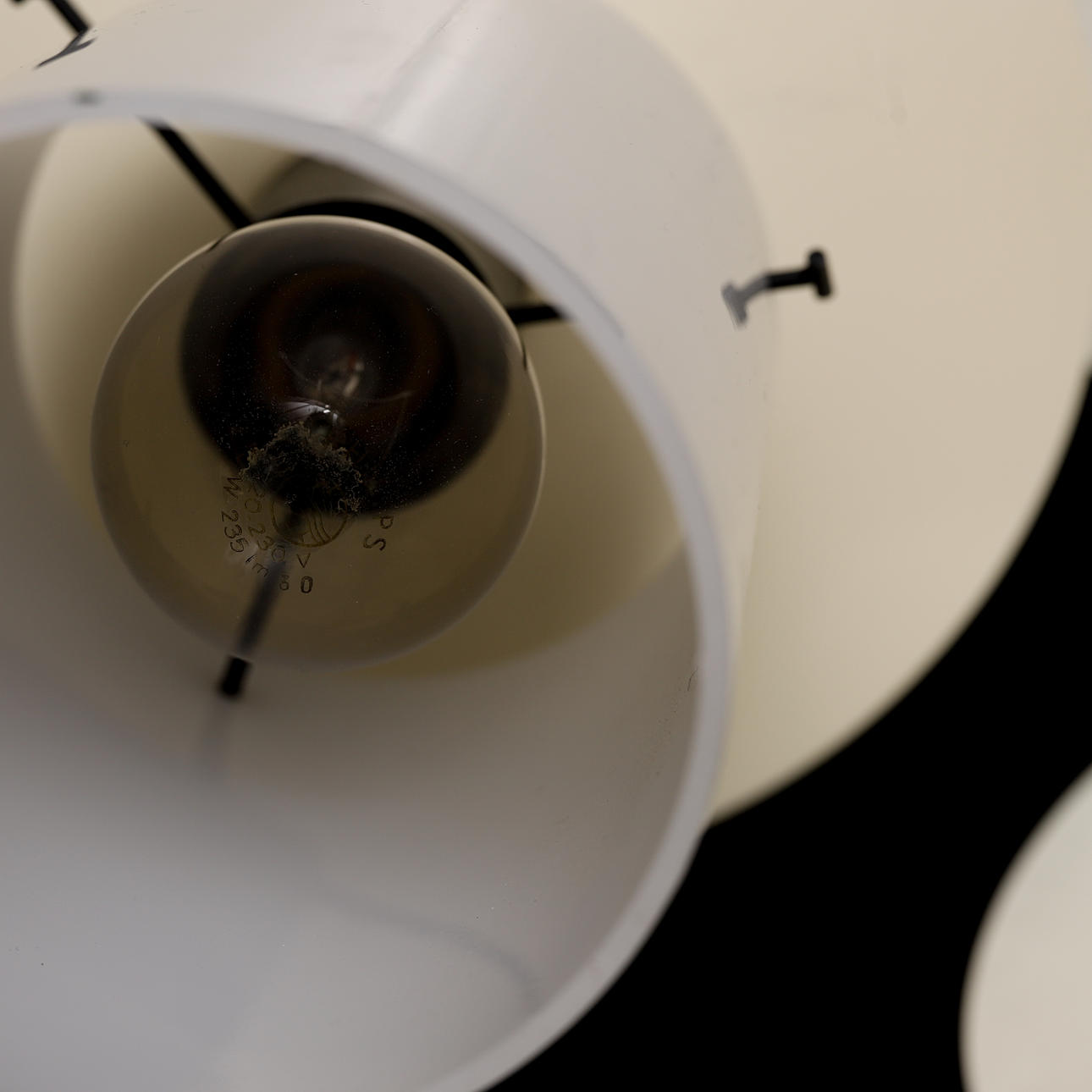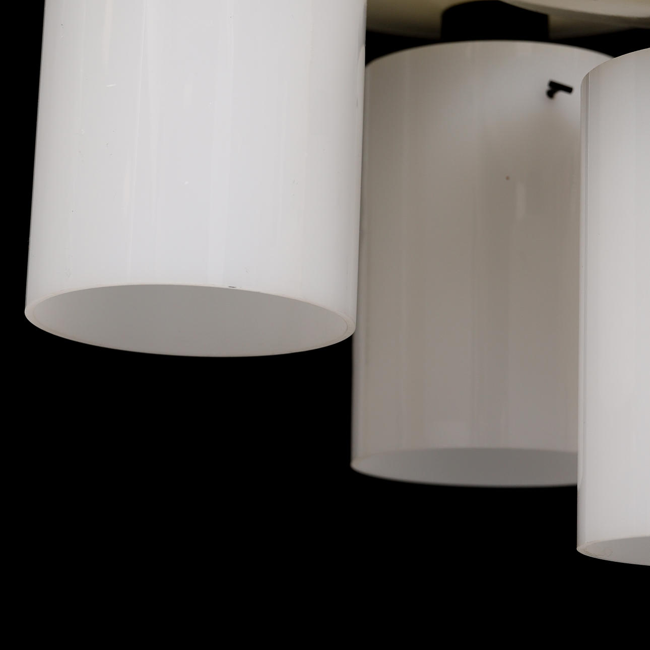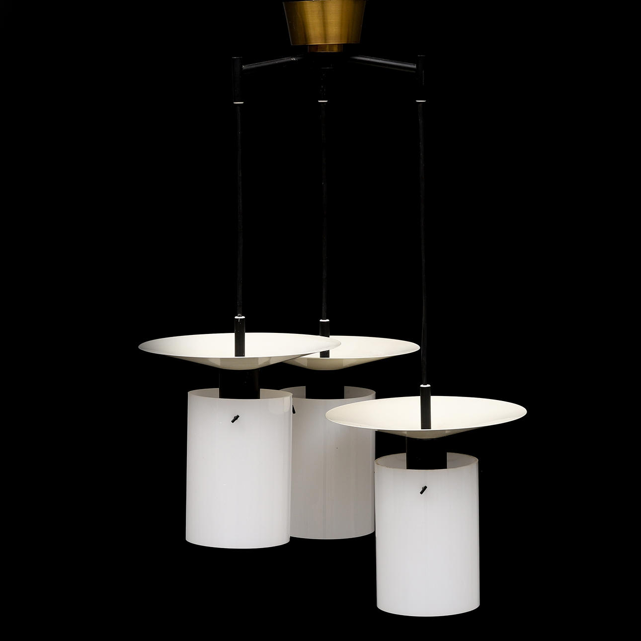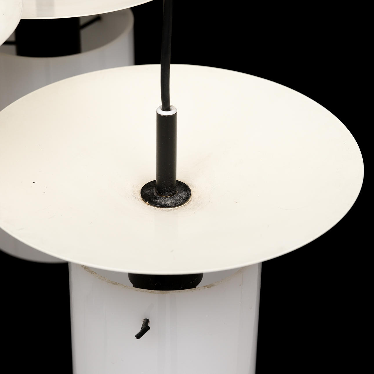 Plate painted in black and white. Cylindrical screens in opaque acrylic plastic. Diameter about 45 cm.