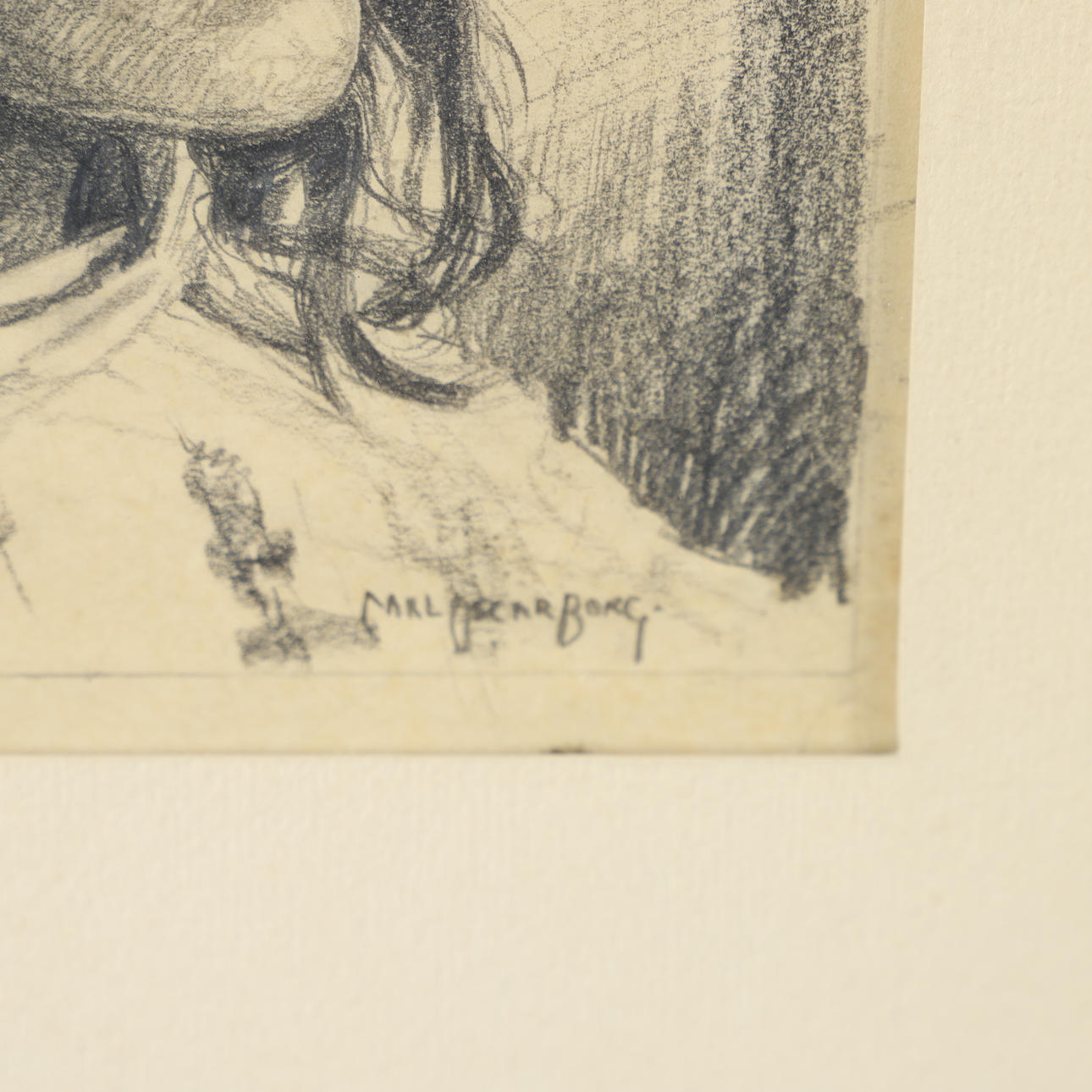 CARL OSCAR BORG. Indian portrait, drawing, signed.