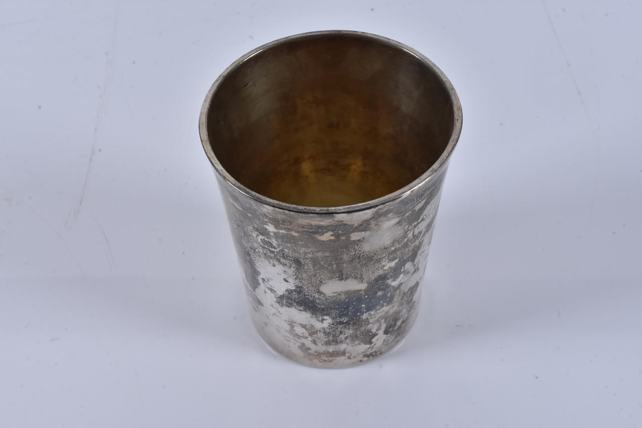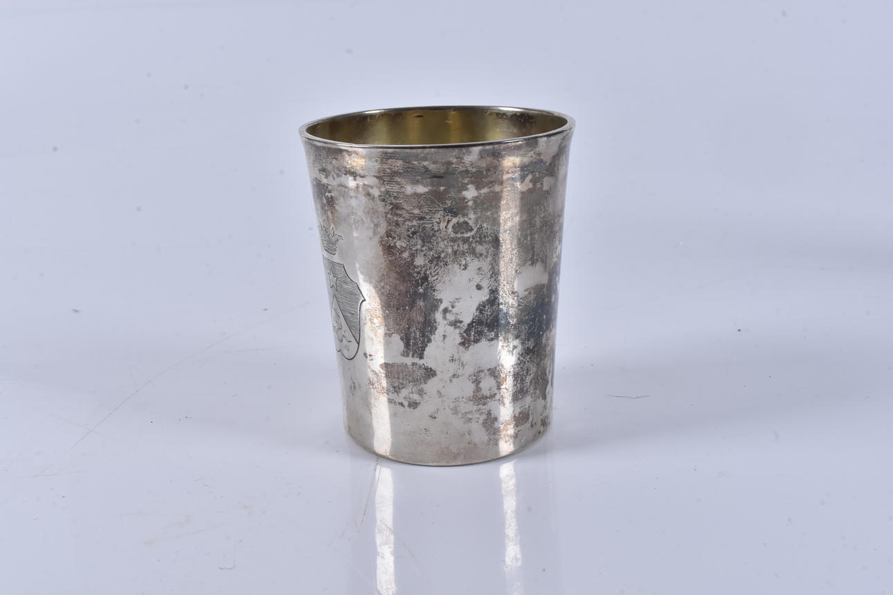 the closest cylindrical, engraved decoration of the arms of the noble family von Schultzenheim, h 8 cm, weight 91 grams.