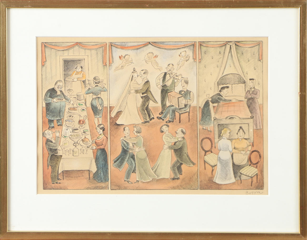 GEORG CRONA. Dancing at the hotel, graphic sheet, signed Crona.