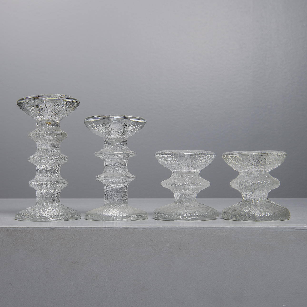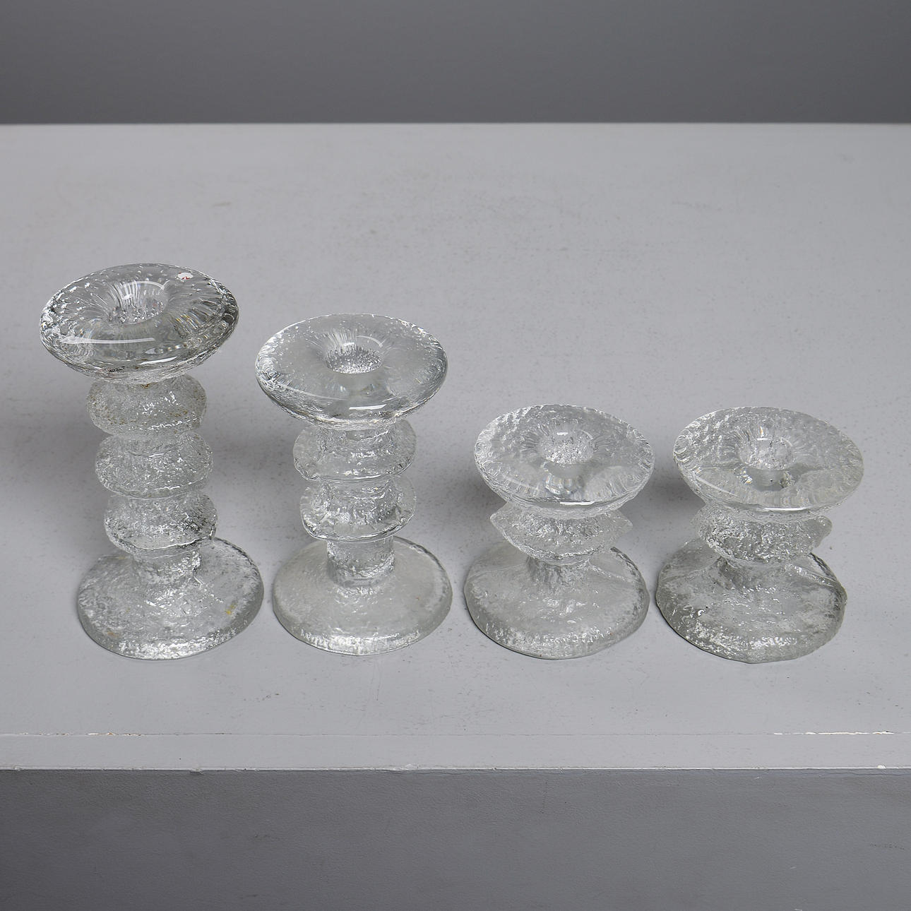 TIMO SARPANEVA. “Festivo”, 4 candlesticks, Iittala, mostly signed.