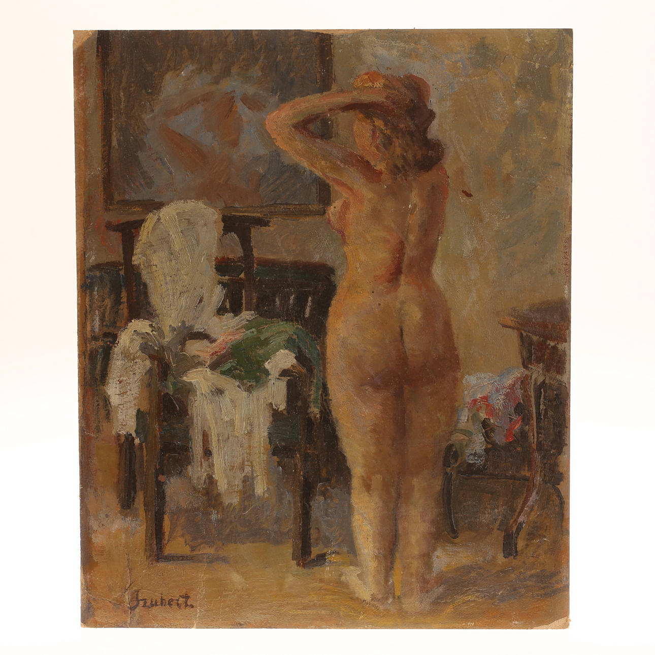 Normal wear and tear, wear, crease, not framed.