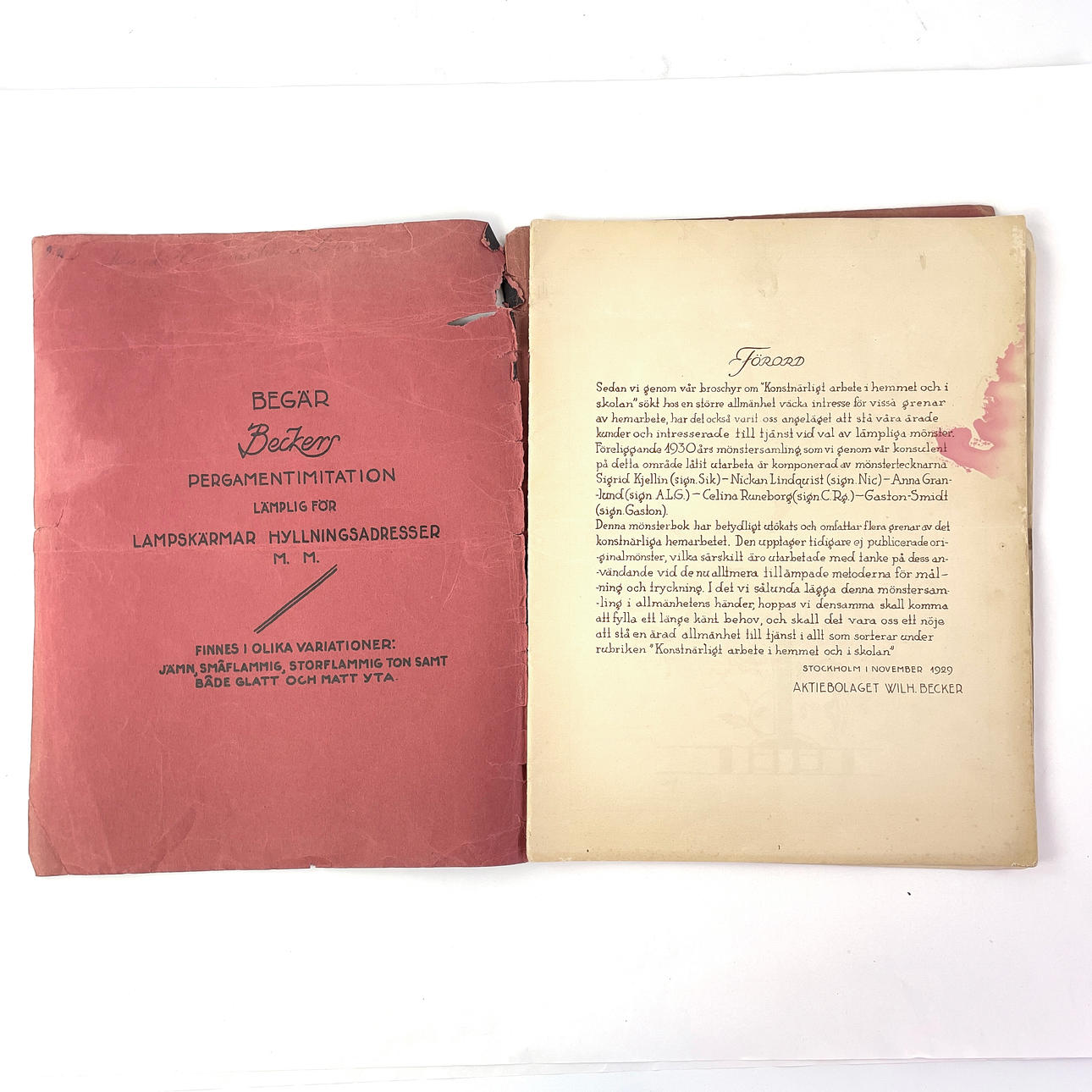 1930's collection of patterns composed by Sigrid Kjellin, Nickan Lindquist, Anna Granlund, Celina Runeborg, Gaston Smidt.