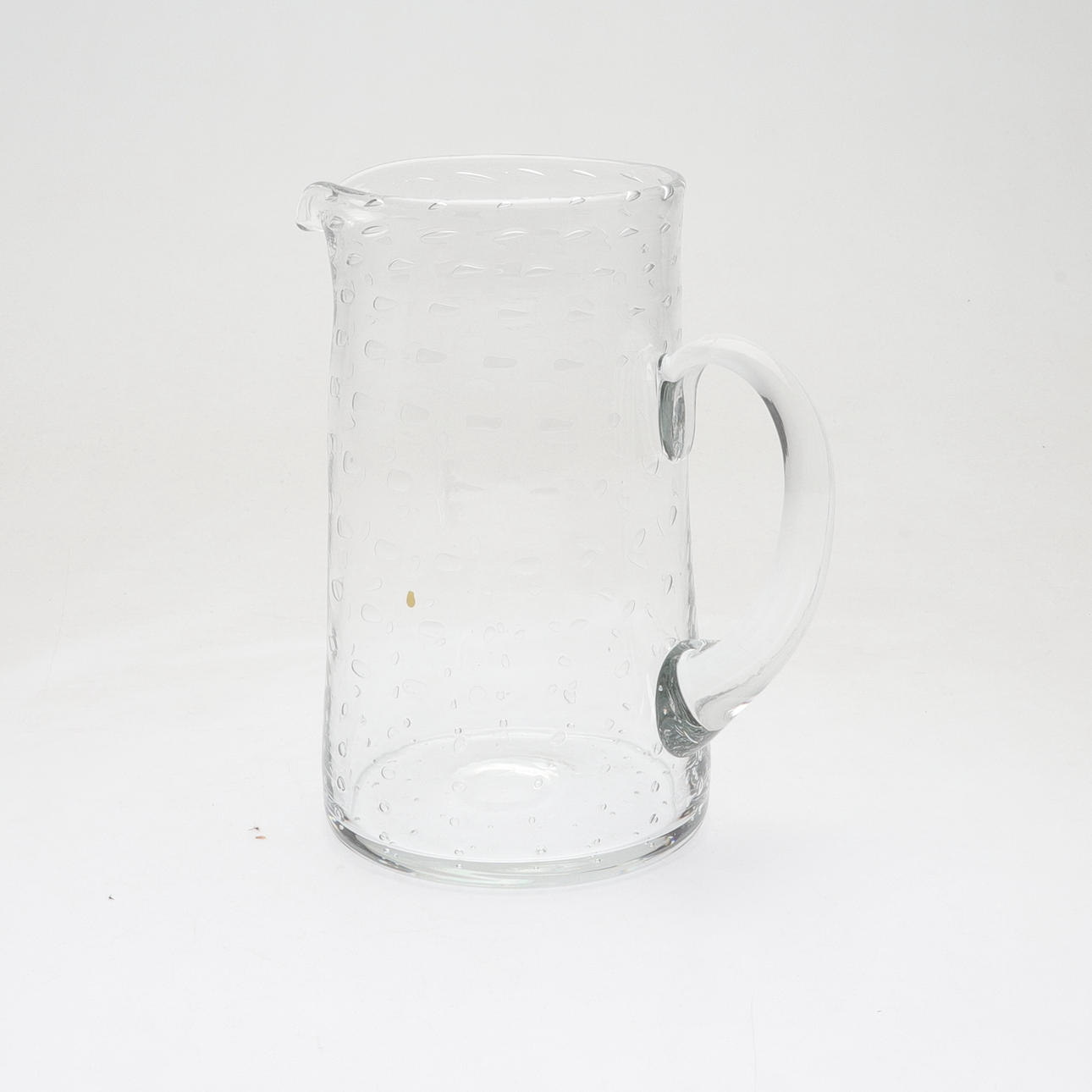 Jugs, 2 pcs, one of which with enclosed air bubbles. Height about 15-21 cm. Cup glass, height approx. 17 cm.