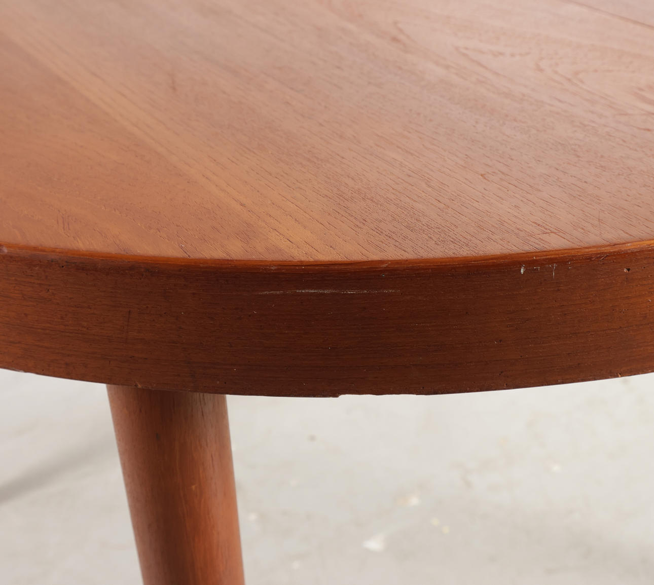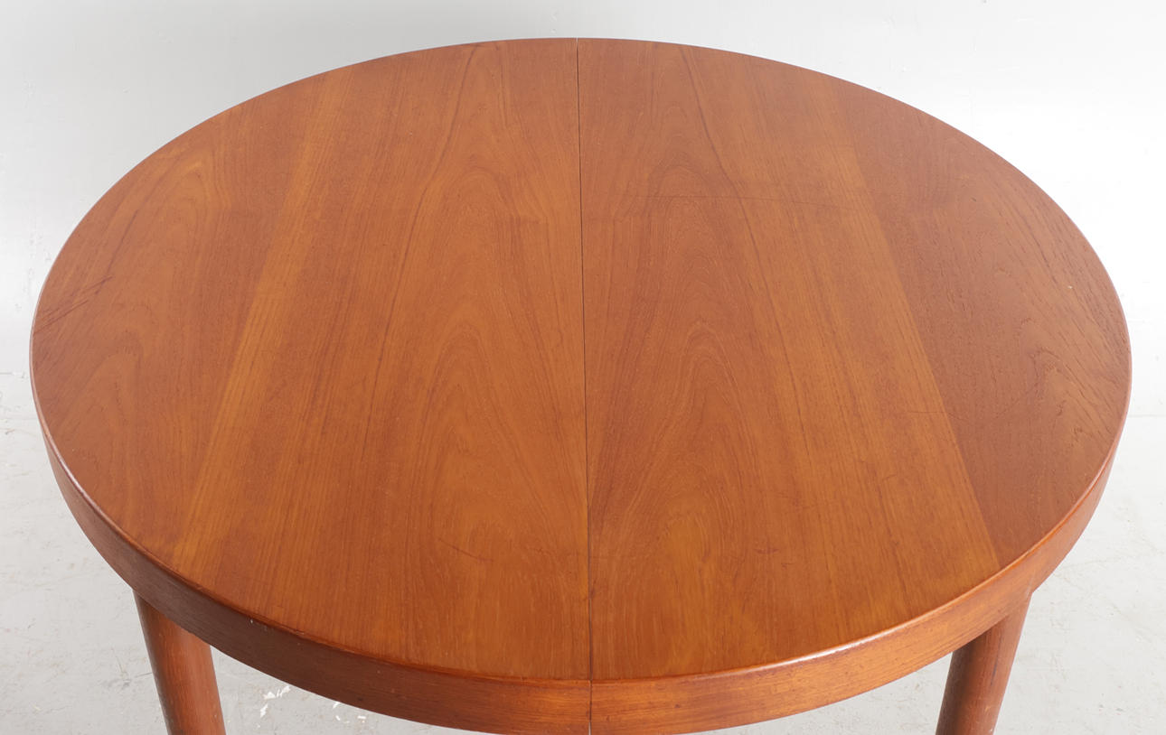 4465421. VILLY SCHOU ANDERSEN. Circular teak dining table, plate with pull-out. Performed at Schou Andersen, 1960s.