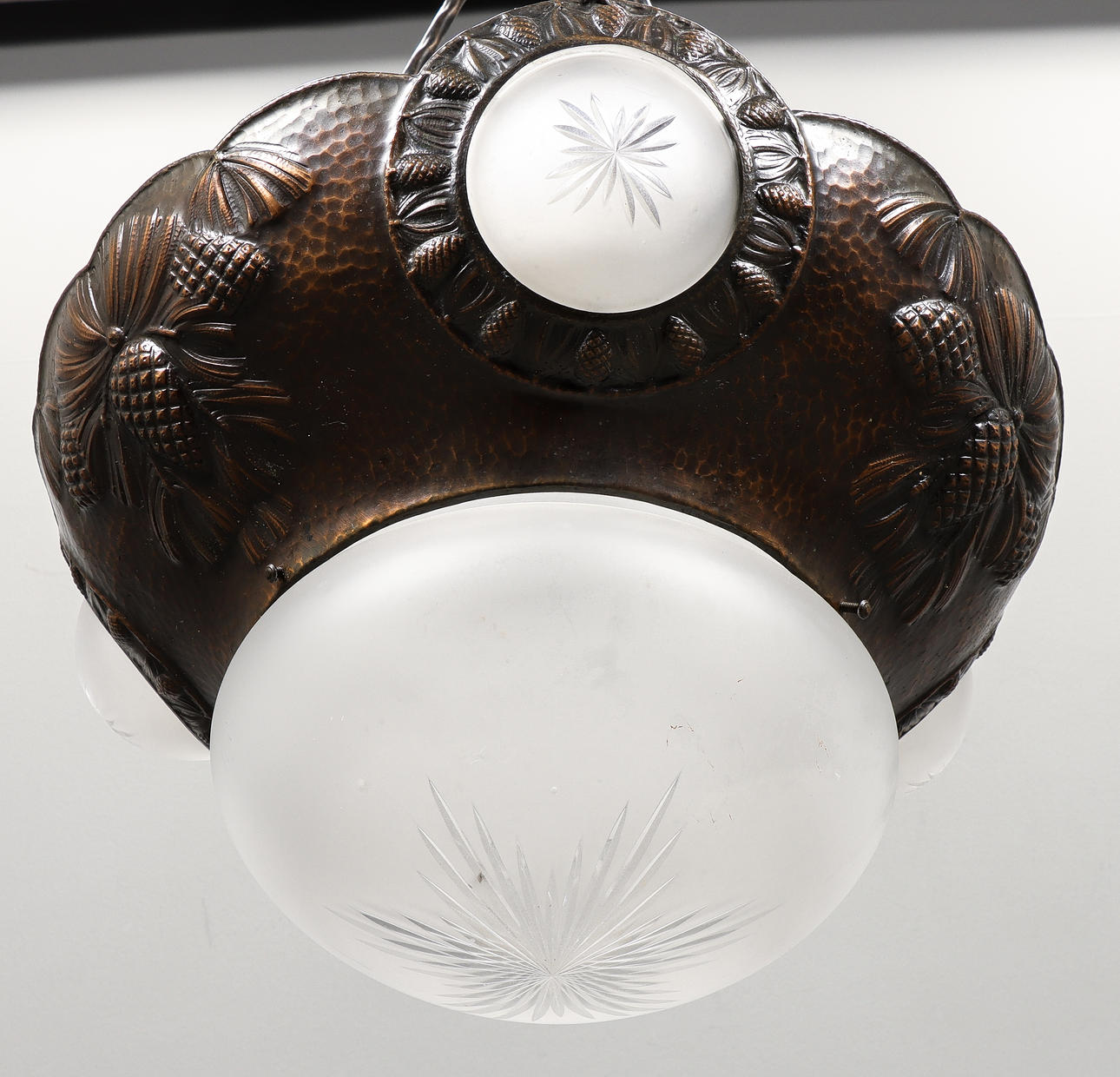4466083. CEILING LAMP Jugend, copper with glass cup.