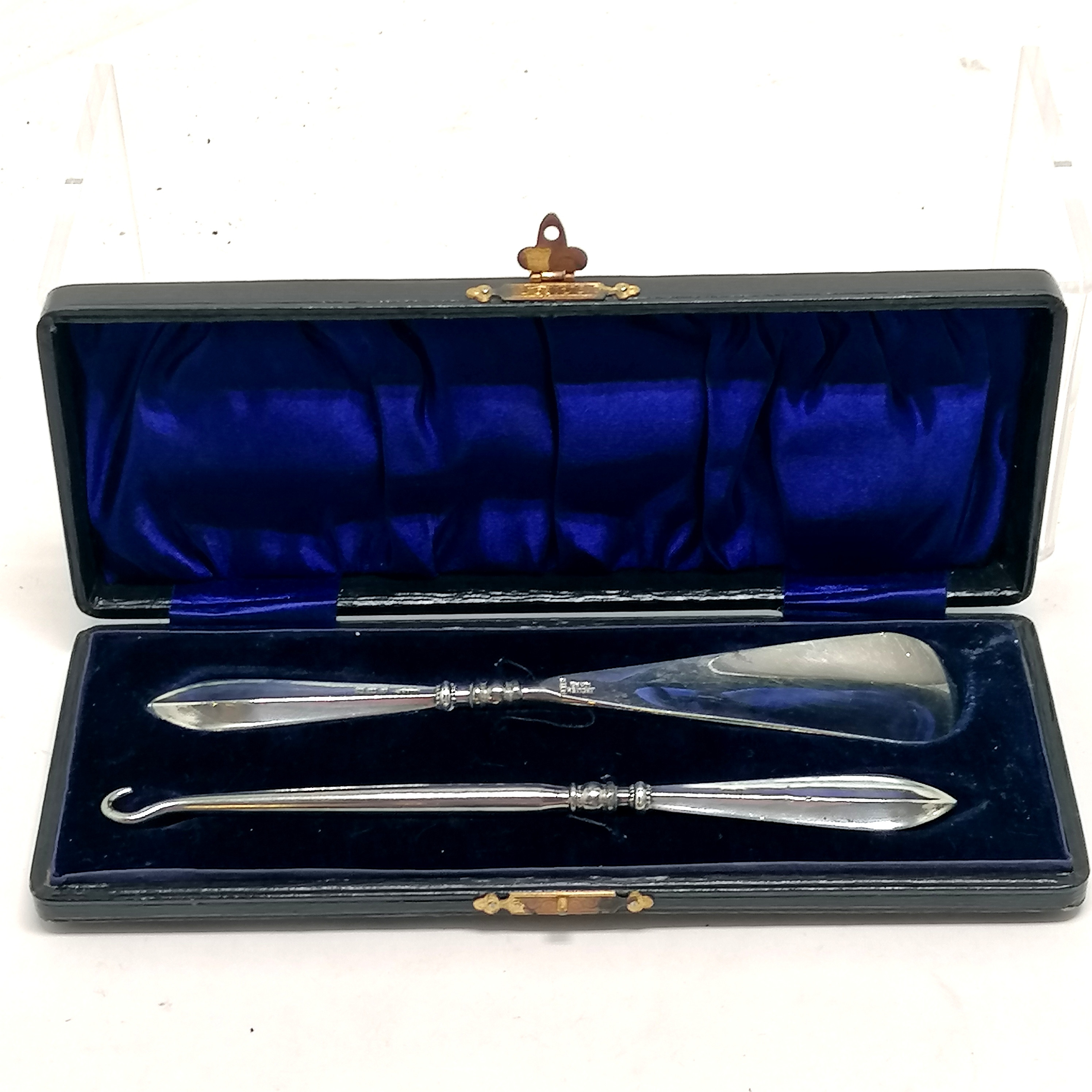 4466375. *CASED 1912 SILVER BUTTONHOOK / SHOEHORN.