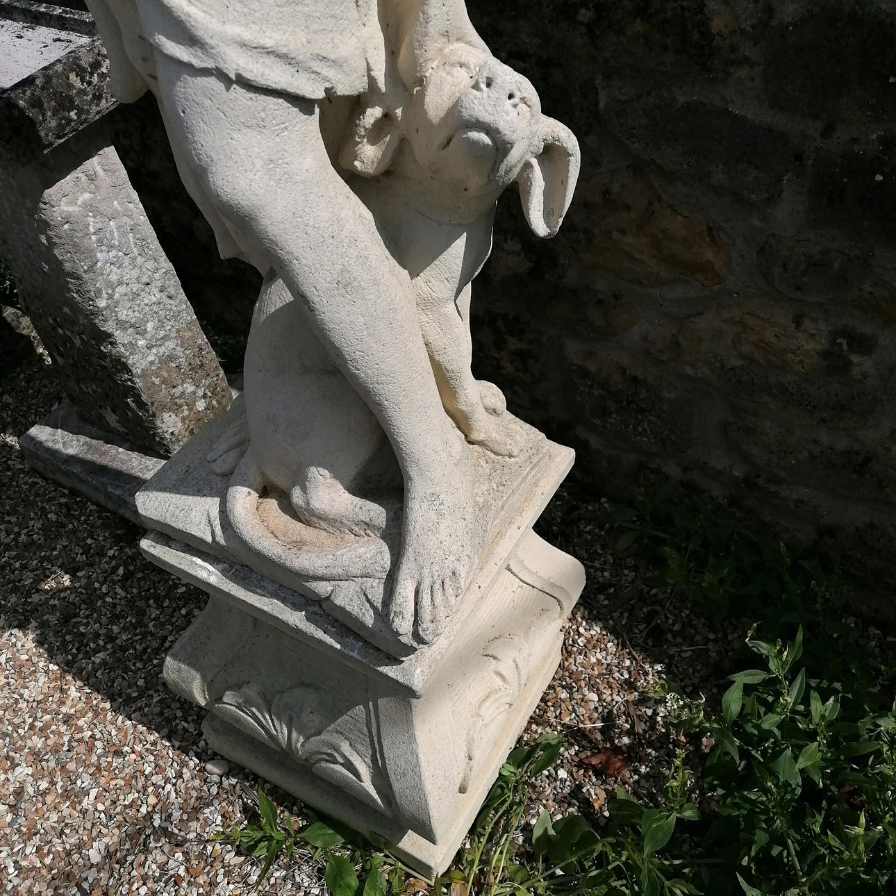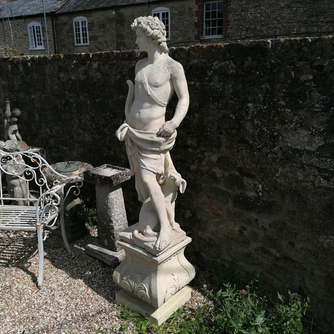 Very large figure of the Hunter on square plinth - approx 192cm high x 40cm diameter base.