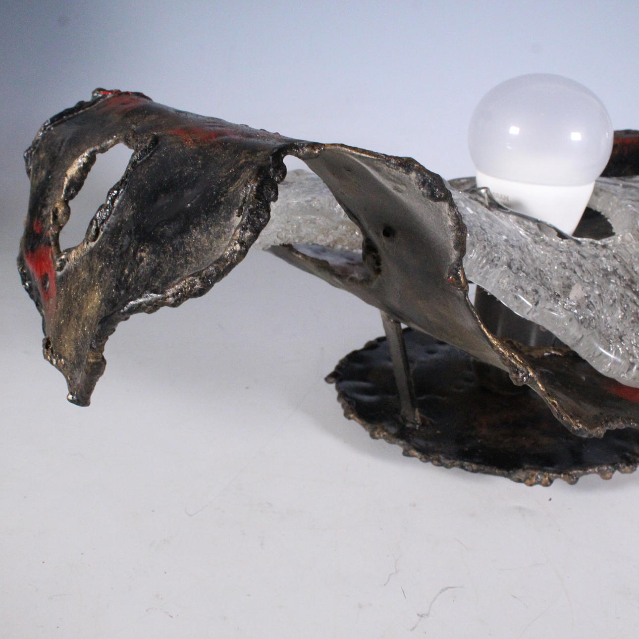 Brutalist wall lamp from the 1970s made of glass and metal.