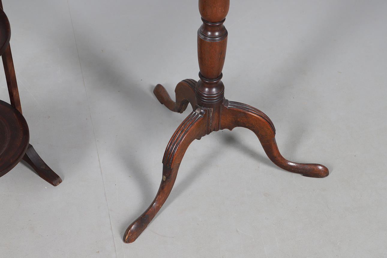4466838. A MAHOGANY TRIPOD TABLE AND A CAKE STAND.
