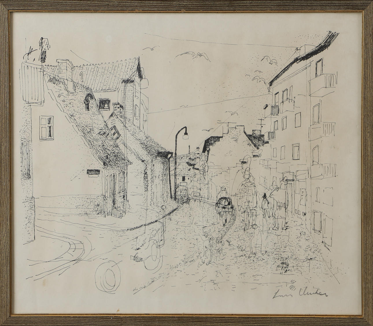 LARS HERDER. Helsingborg motif, graphic leaf, signed.