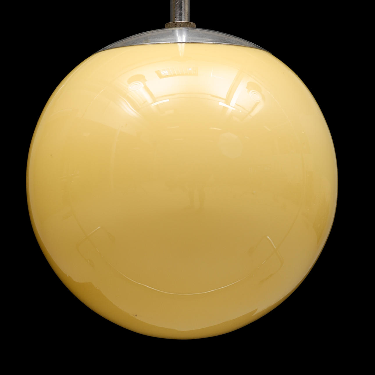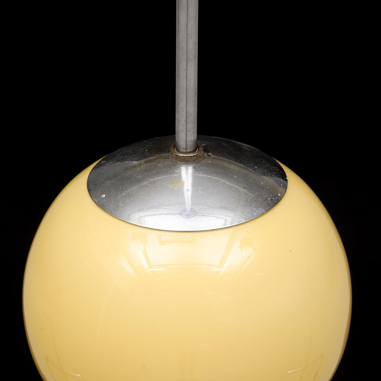 Chrome-plated metal. Cup made of yellow-tinted glass. Diameter approx. 20, height 74 cm.