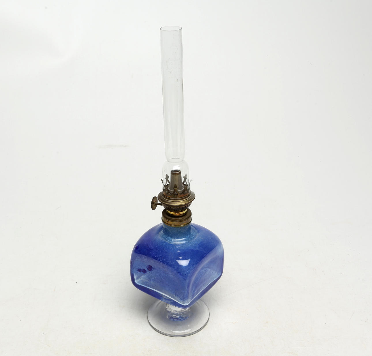 4467407. TABLE KEROSENE LAMP, glass/metal. dated 1976.