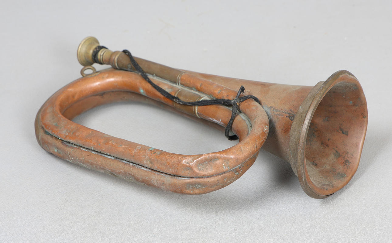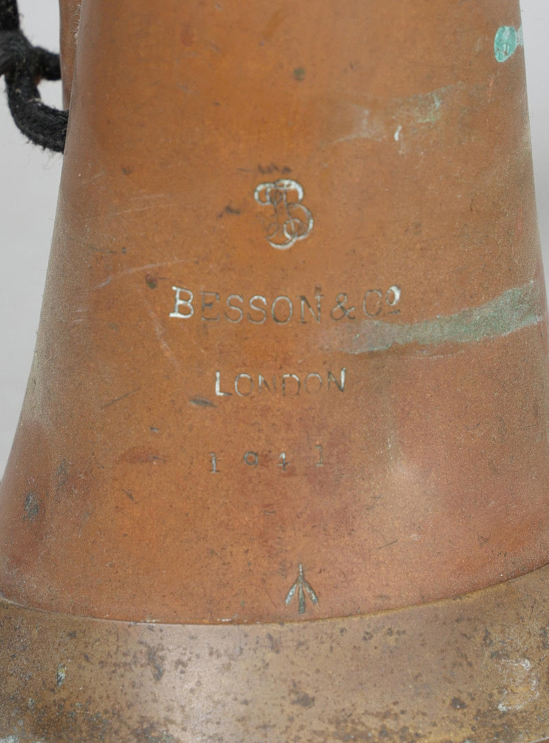 A WW2 PERIOD MILITARY BUGLE BY BESSON & CO.