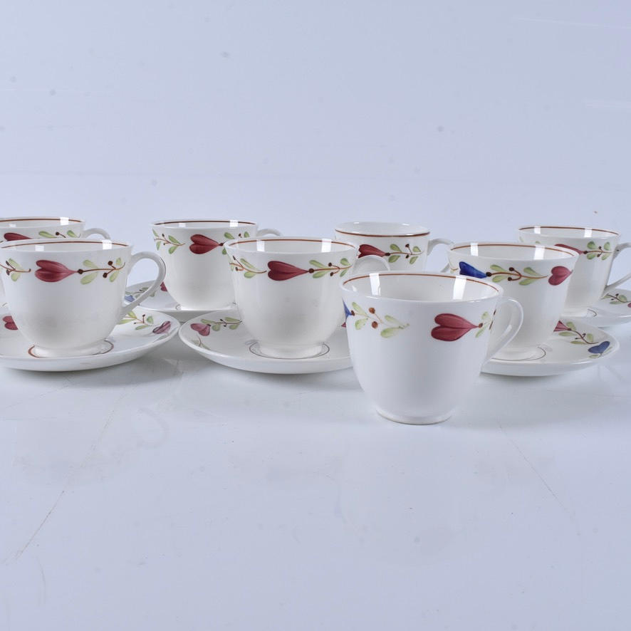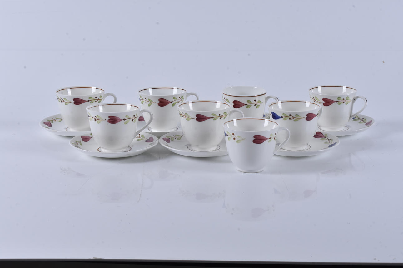STIG LINDBERG. COFFEE CUPS, 8 PCS, BONE CHINA, CREEPER.