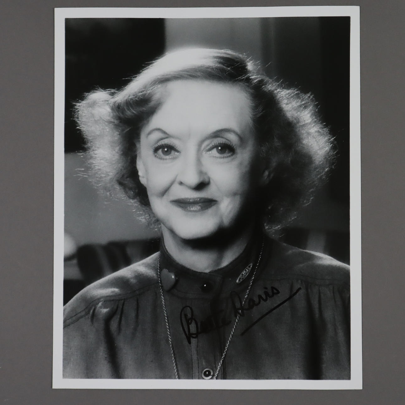 signed photo of Ruth Elizabeth “Bette” Davis (1908-1989, American stage and film actress), signed “Bette Davis” with black felt pen, ca. 25.4 x 20.3 cm (approx. 8 x 10 inches).