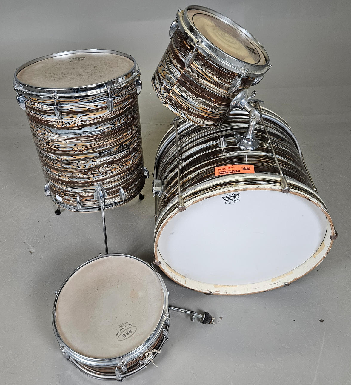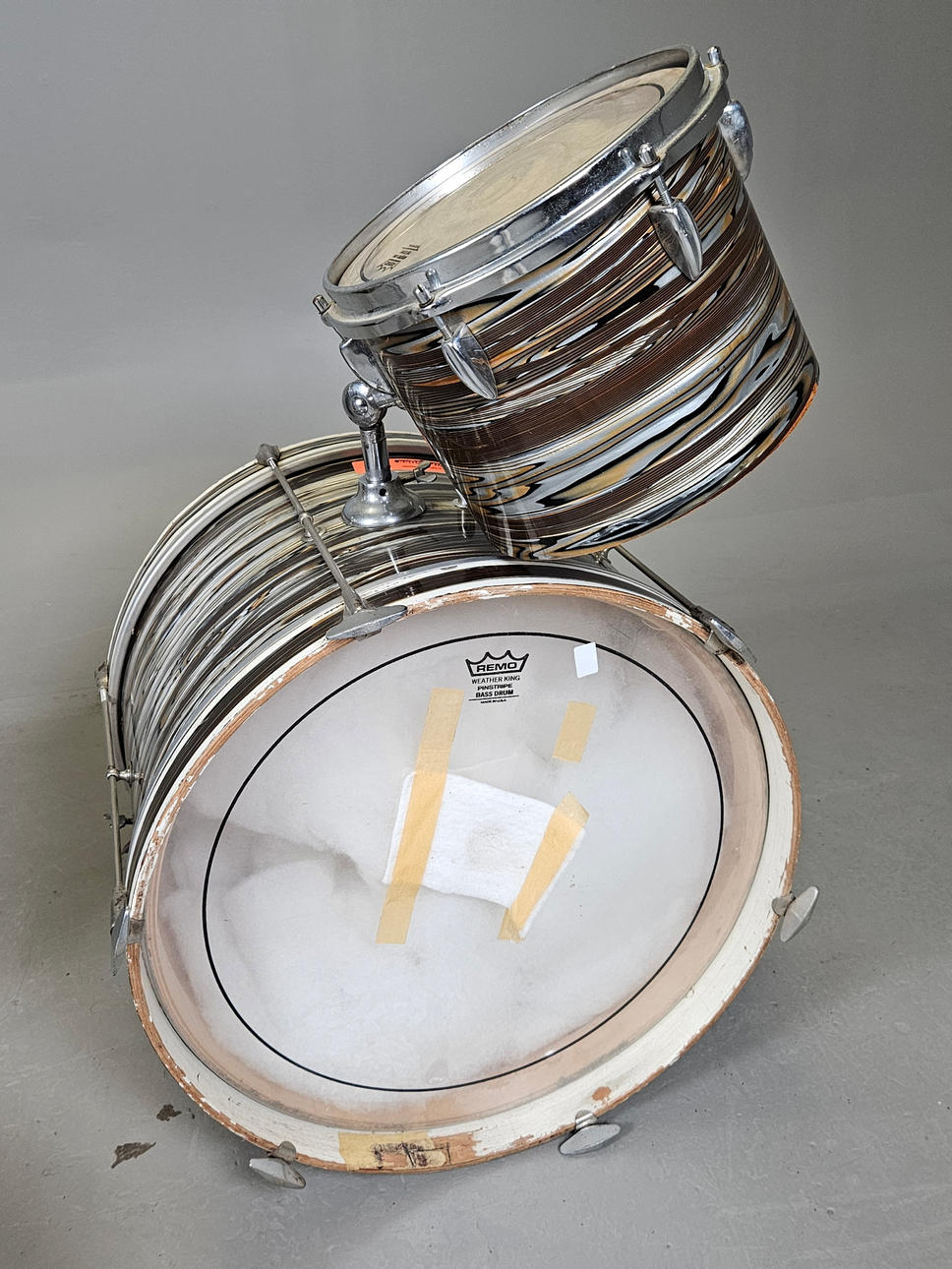 Normal wear and tear. Bass drum with tape cooking. Not functional tested, not fully reviewed, no functional warranty is provided.