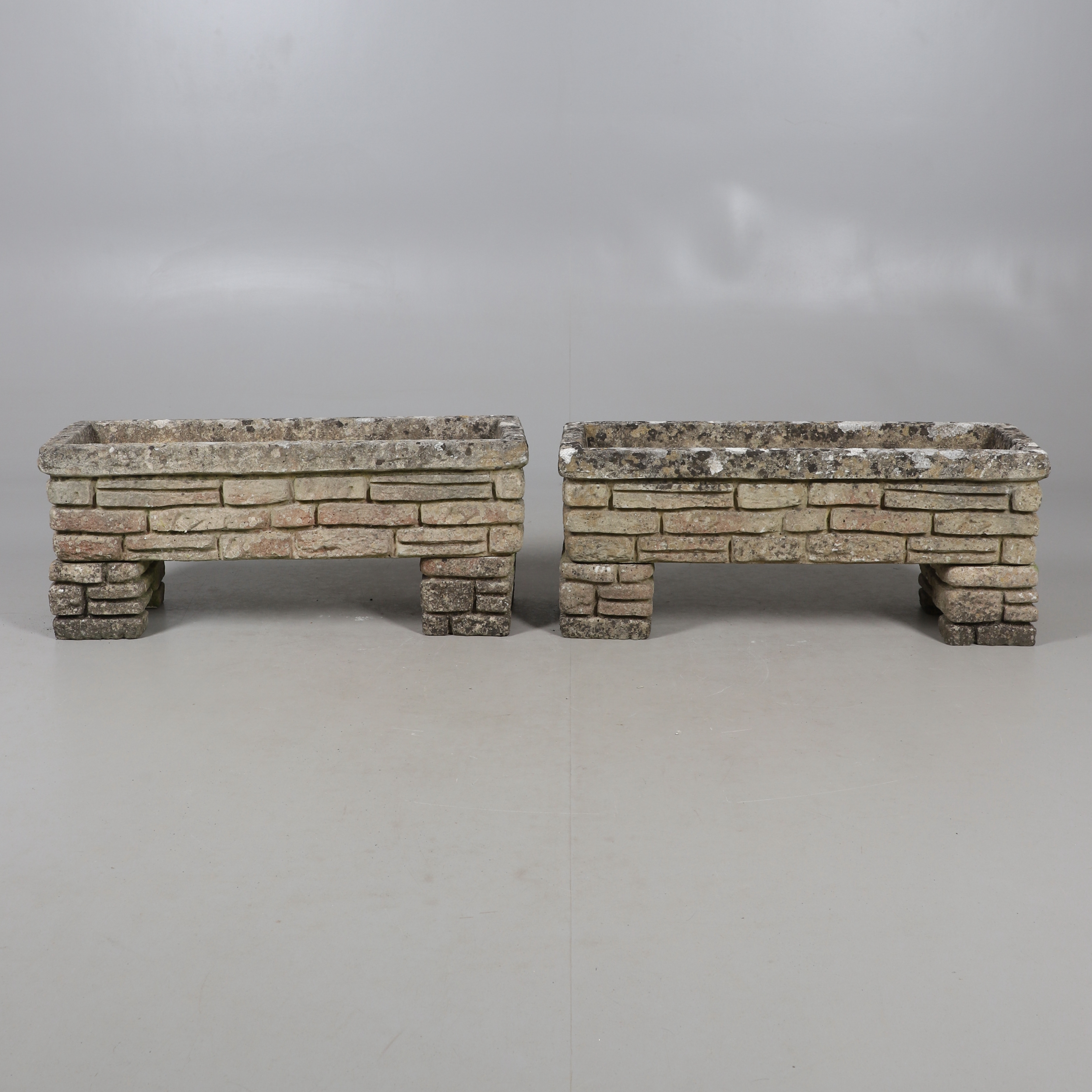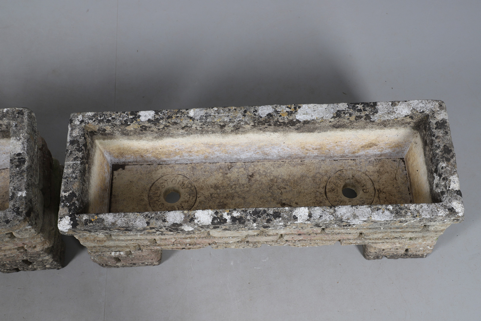 4469887. A PAIR OF RECTANGULAR SANDFORD STONE TROUGH PLANTERS.