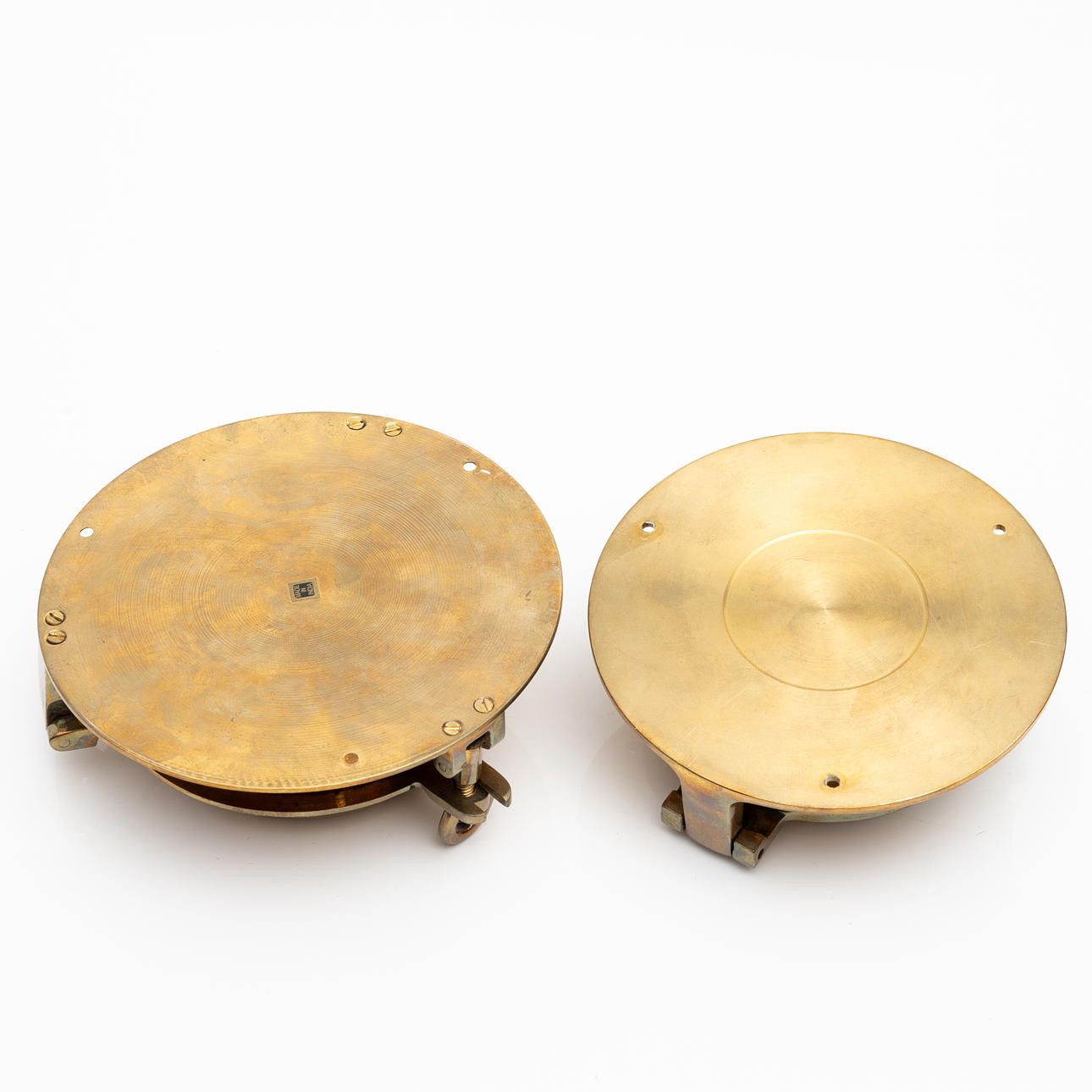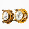 Barometer, diameter approx. 14 cm. Clock, Gorch Fock, diameter approx. 15,5 cm.