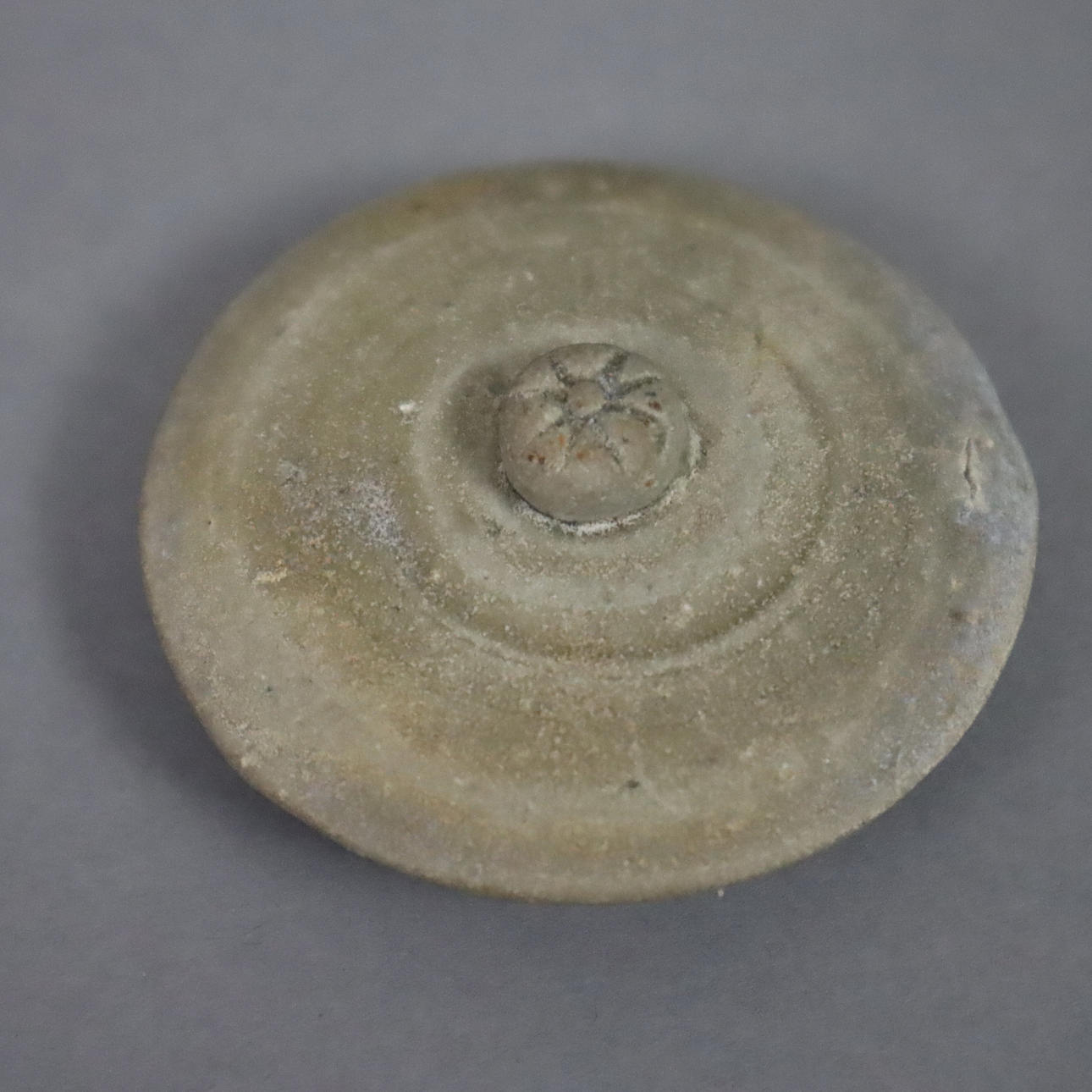 4470437. SMALL SPHERICAL YUE LID VESSEL, CHINA, STONEWARE.
