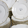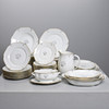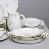 9 dinner plates, 10 deep plates, 8 appetizer plates, 12 dessert plates, 1 jug, 1 sauce boat, 8 serving bowls and saucers. Largest barrel dimensions: 37 x 25 cm.