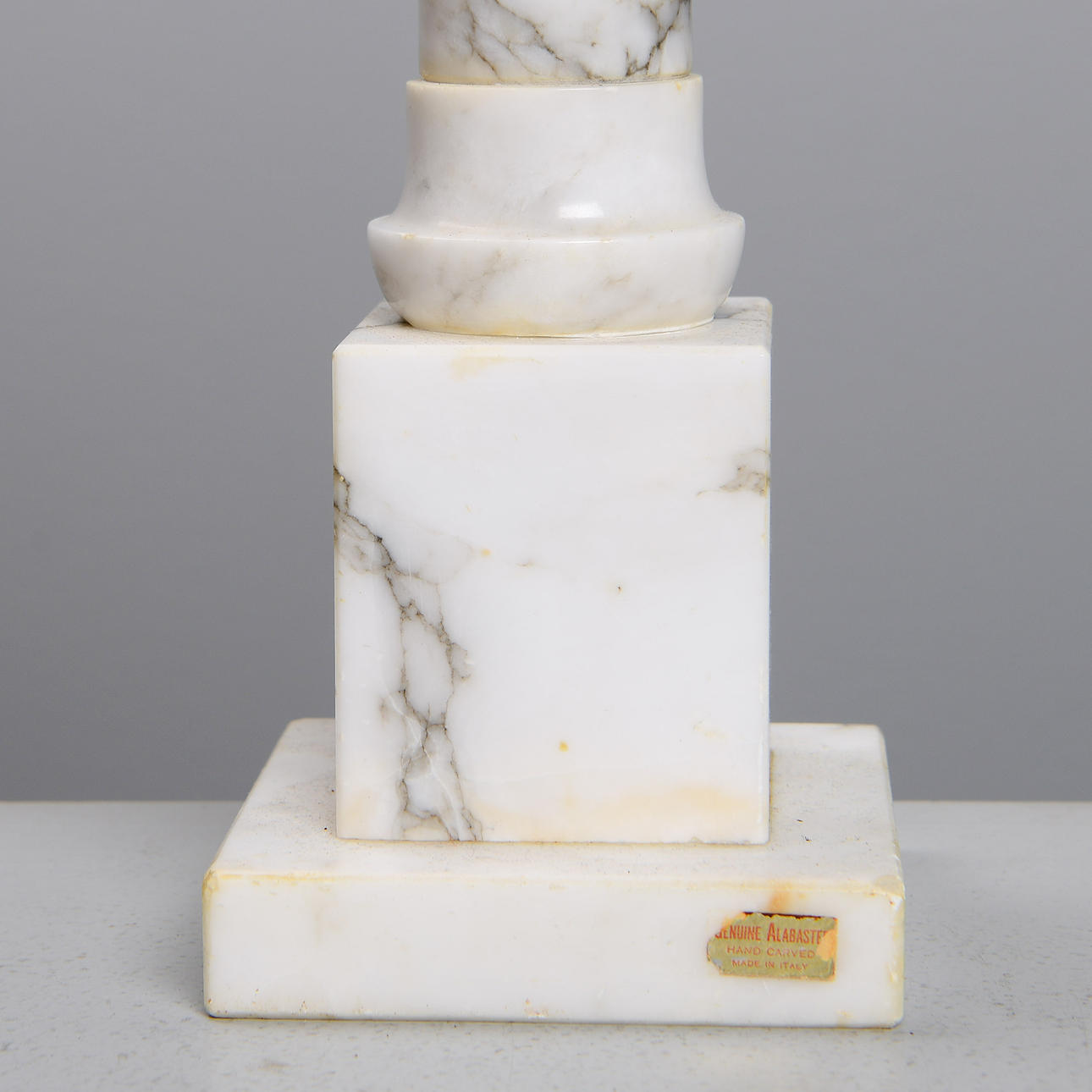 Labeled. Hand-carved. Lampshade included. Height 73 cm.