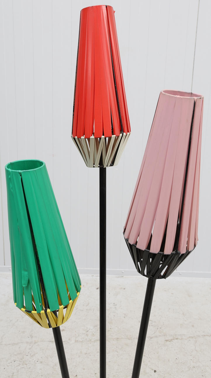 FLOOR LAMP, metal, with plastic strap, 1950s.